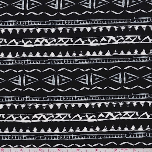 Black/White/Grey Tribal Stripe Challis Fabric
