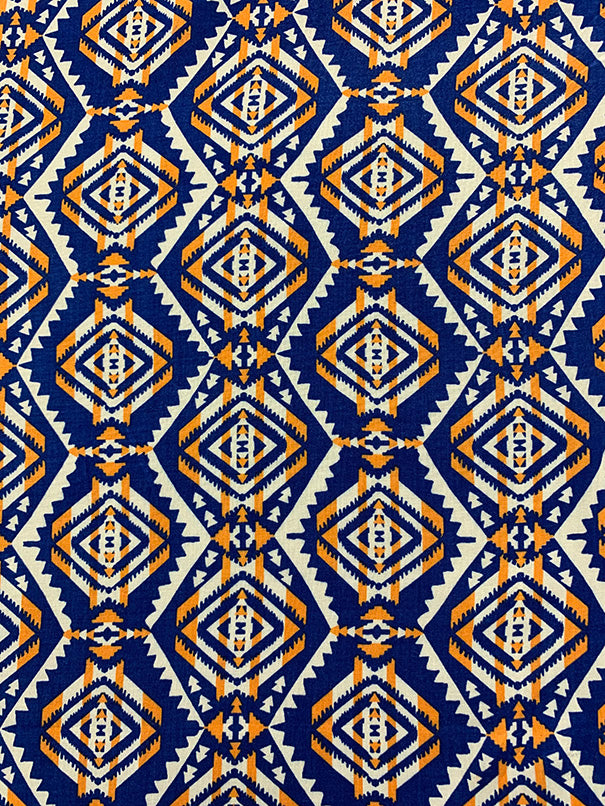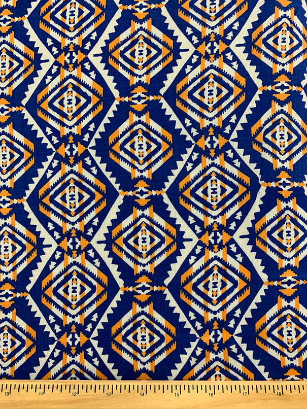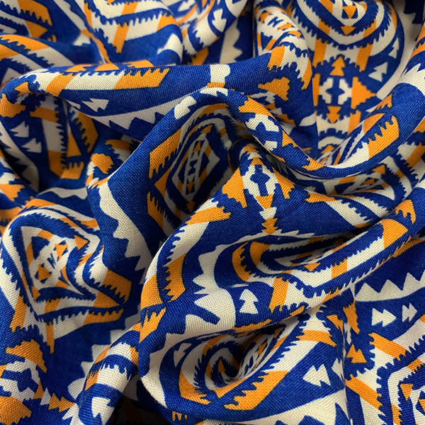 Blue Aztec Stripe Print Rayon Challis Fabric