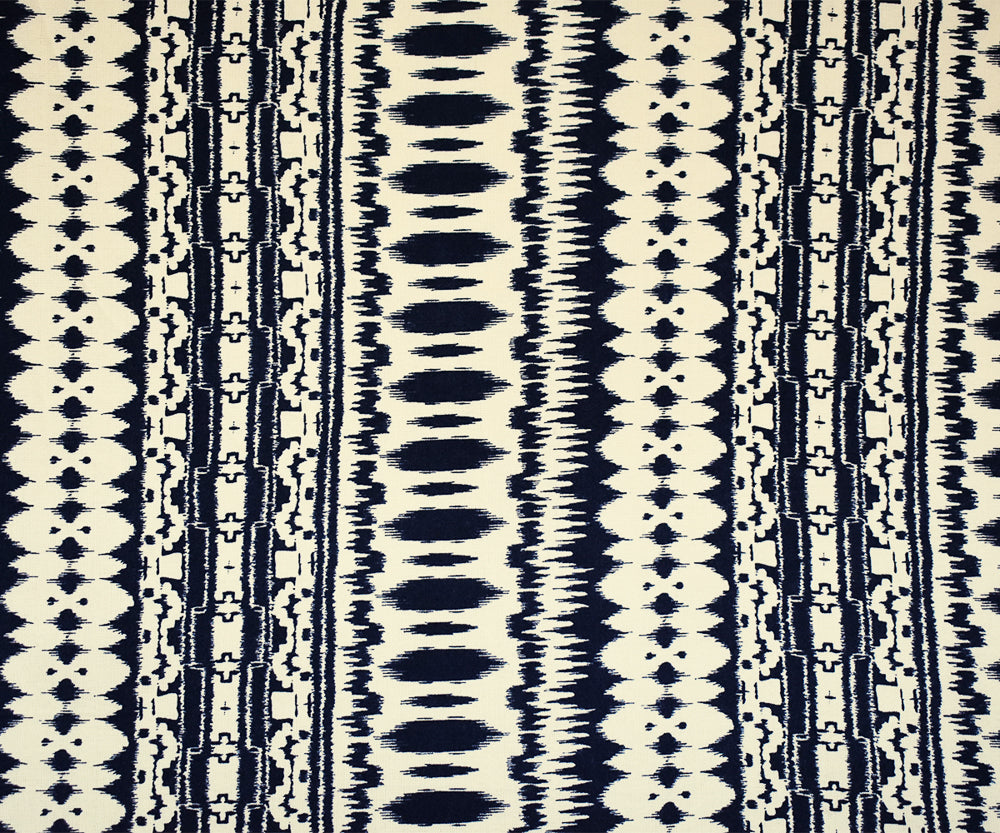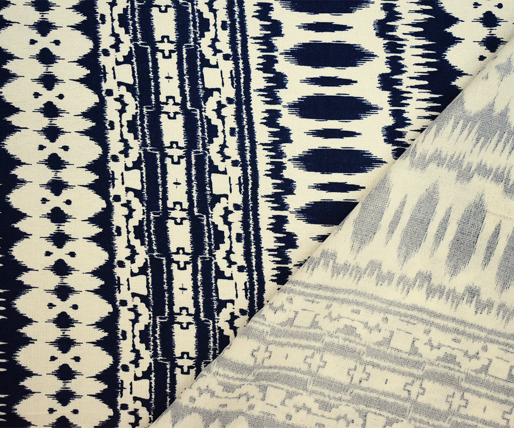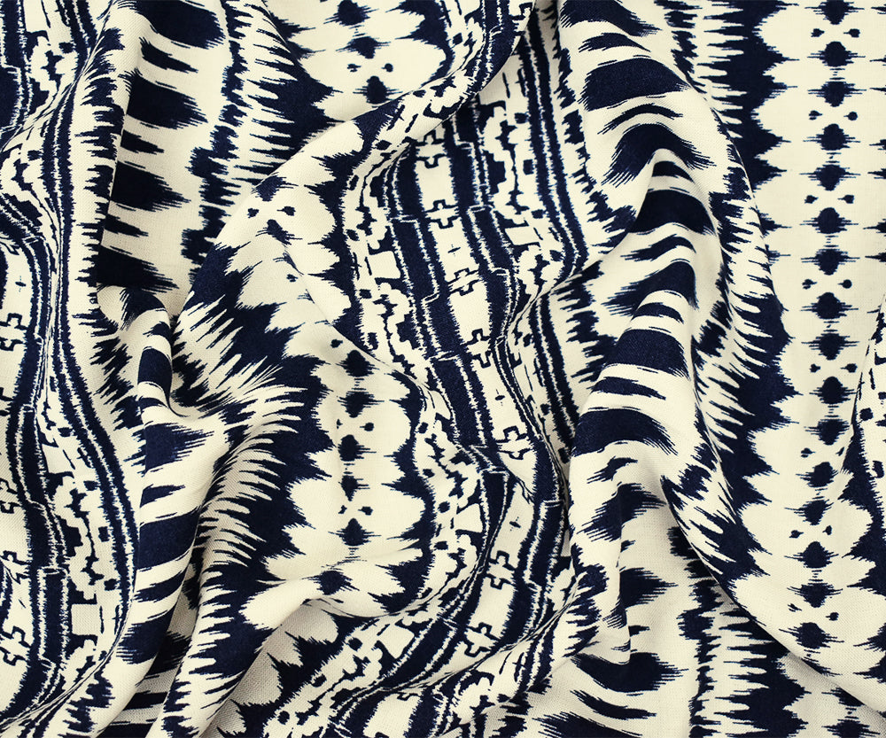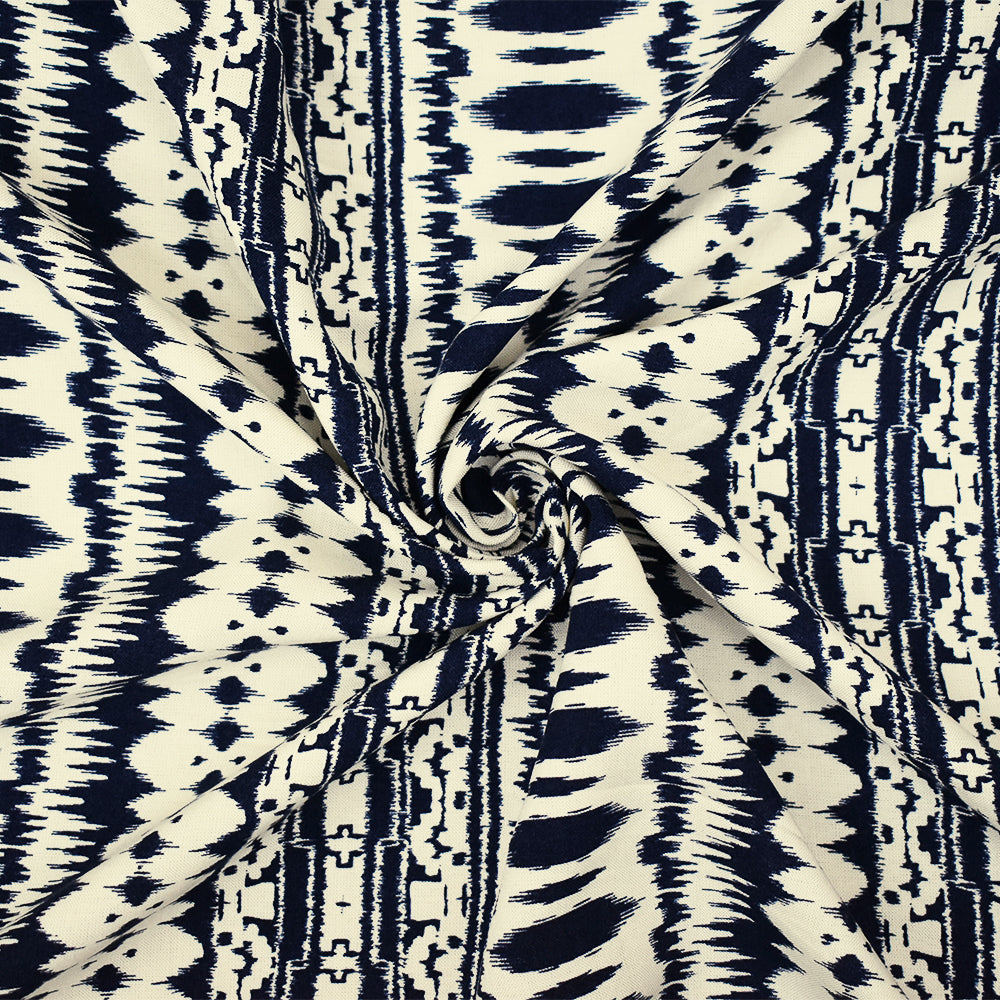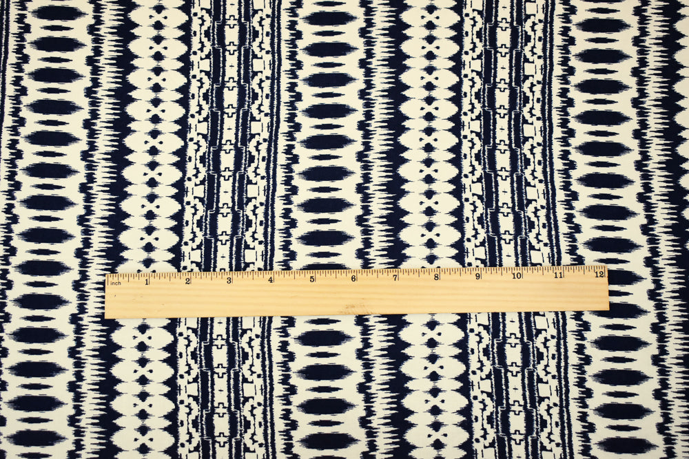 Blue-Ivory Ikat Striped Printed Rayon Challis Woven Fabric