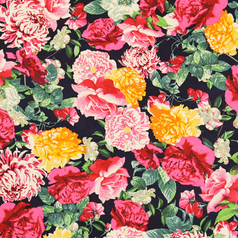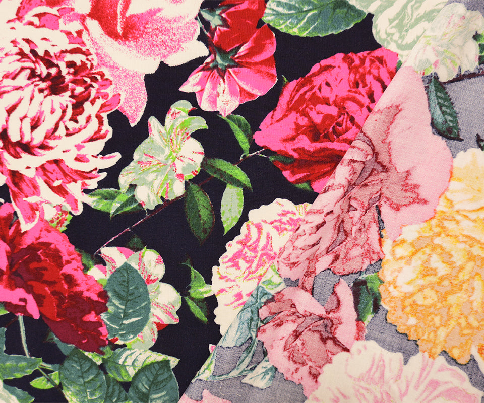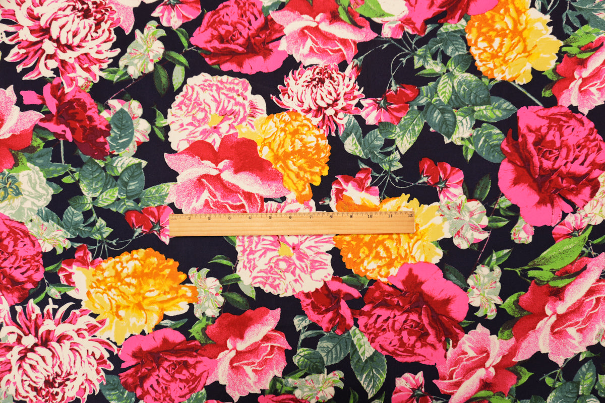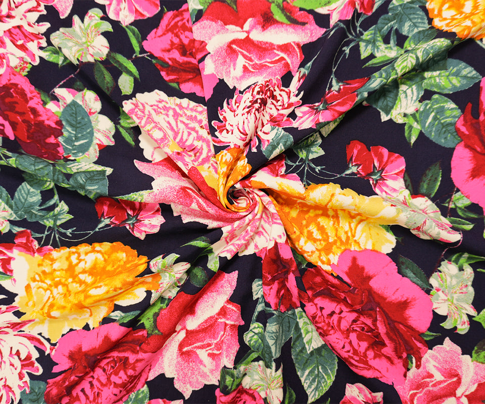 Blue-Red-Multi Rayon Floral Printed Challis Woven Fabric