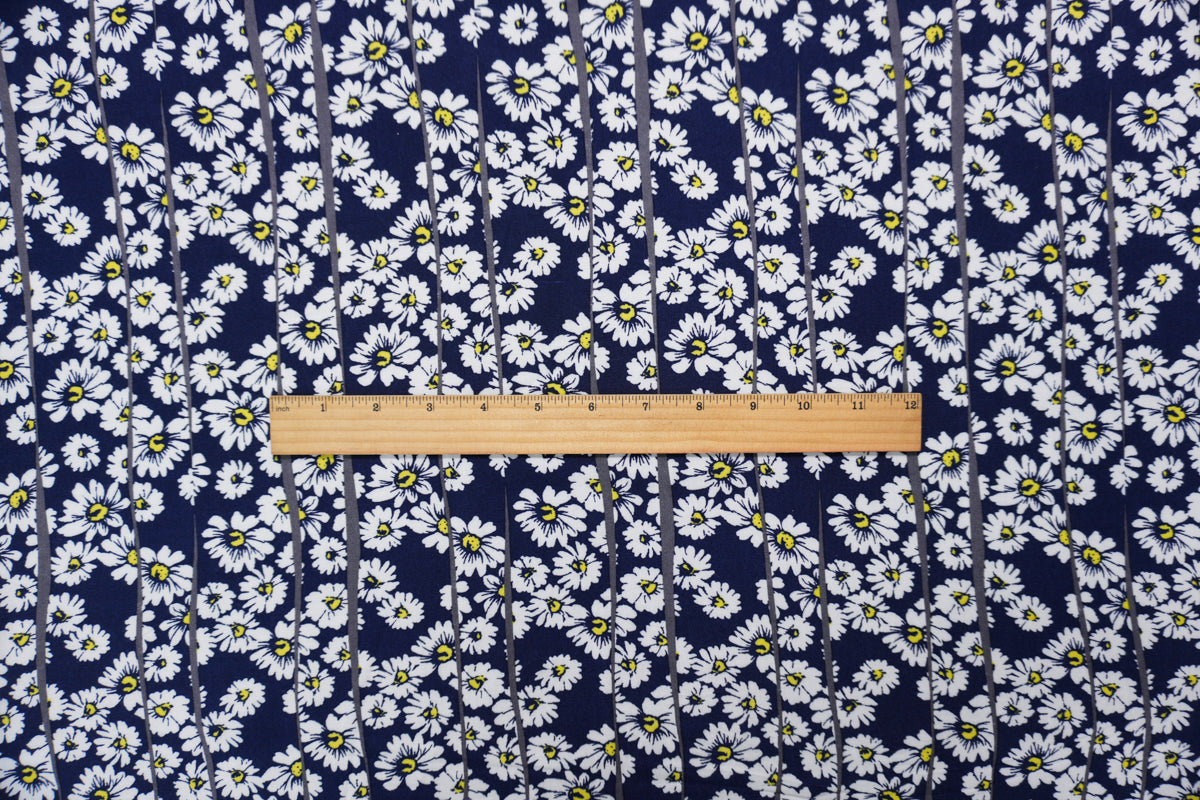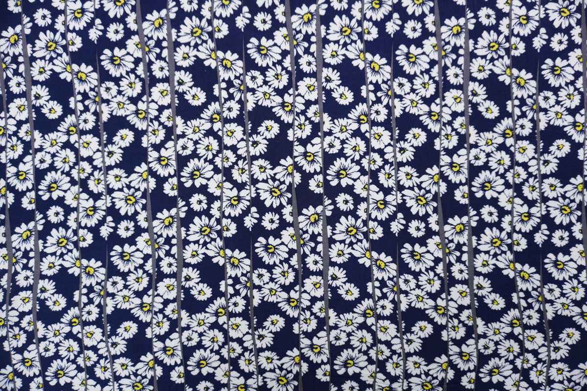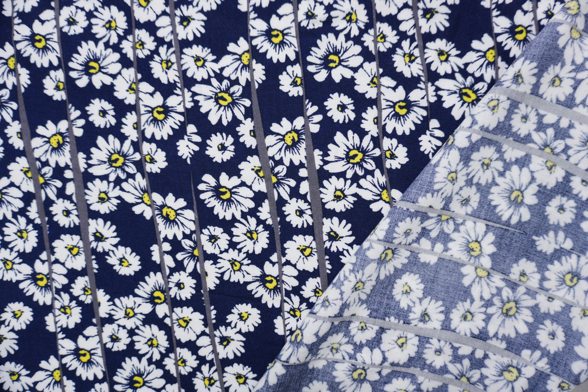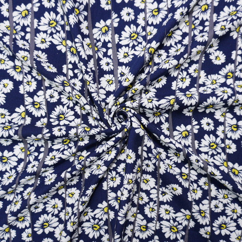 Blue-White-Yellow Rayon Floral Printed Challis Woven Fabric