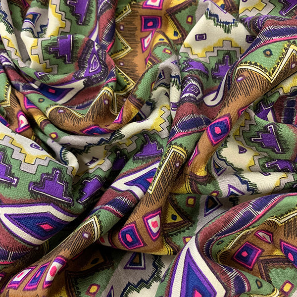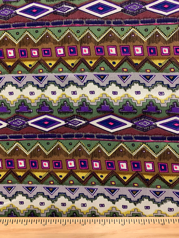 Brown Multi Aztec Stripe Print Rayon Challis Fabric