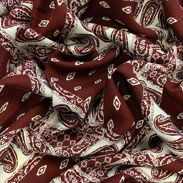 Burgundy and White Bandana Patchwork Print Rayon Challis Fabric
