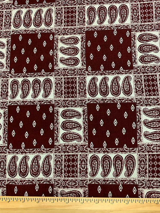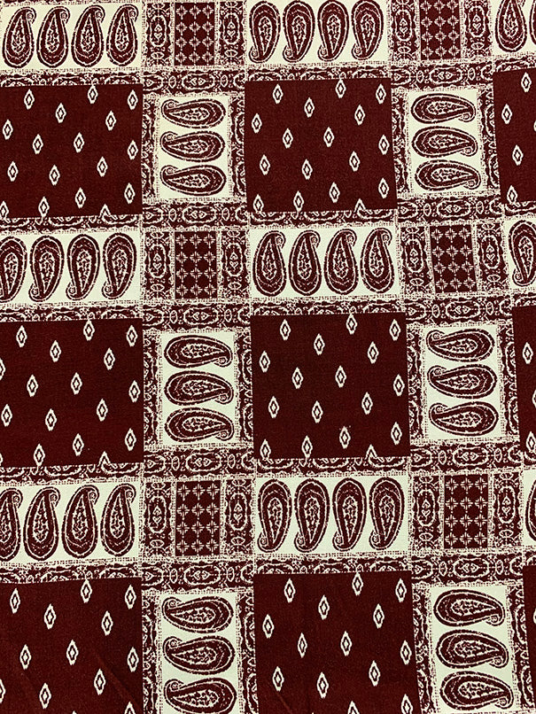 -Burgundy and White Bandana Patchwork Print Rayon Challis Fabric