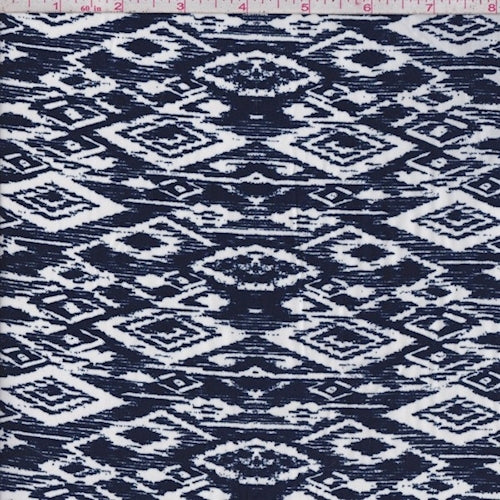 Dark Ink Blue/White Ikat Diamond Challis Fabric