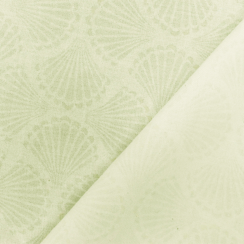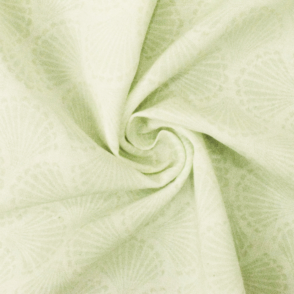 Ivory-Green Shell Printed Rayon Challis Woven Fabric