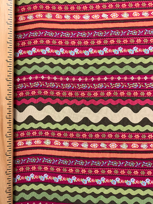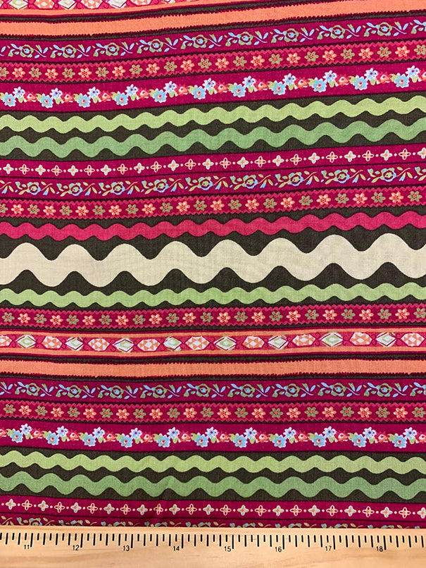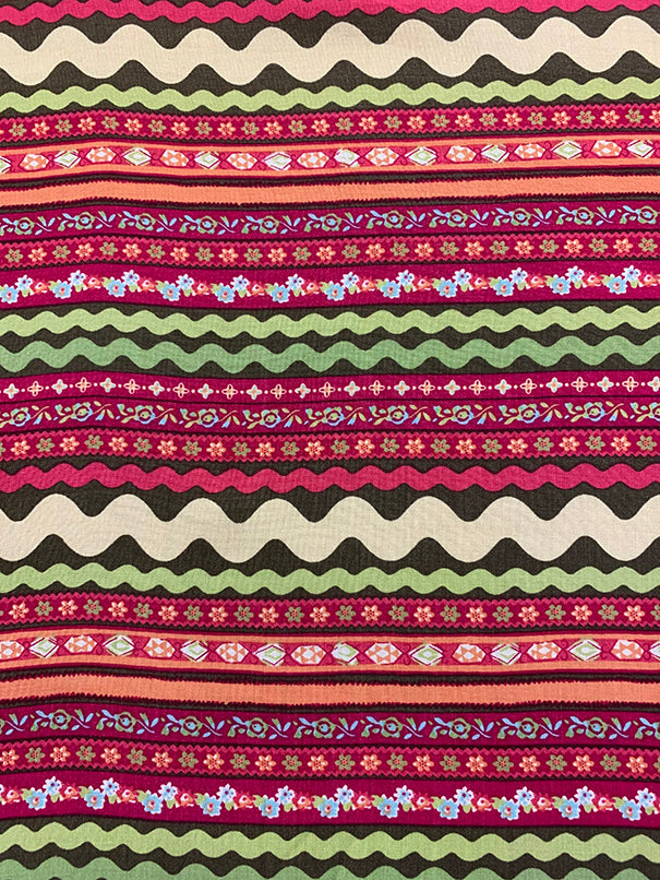 Magenta Multi Stripe Print Rayon Challis Fabric