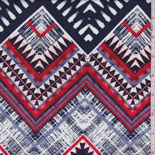 Navy/Red/White Tribal Chevron Rayon Challis Fabric