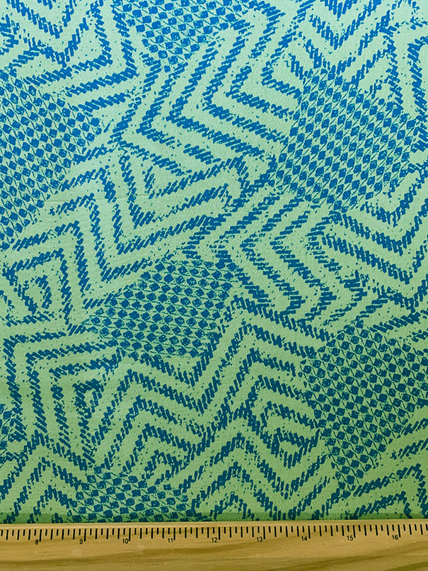 Neon Green and Turquoise Geometric Print Rayon Challis