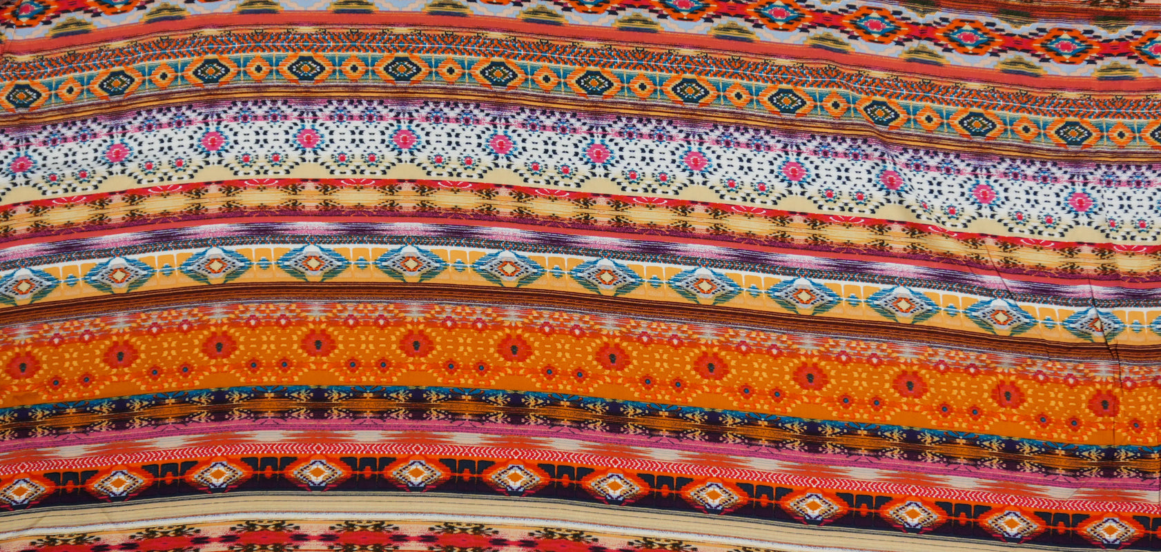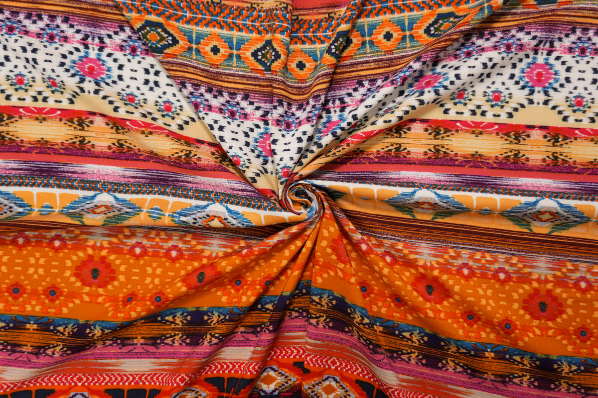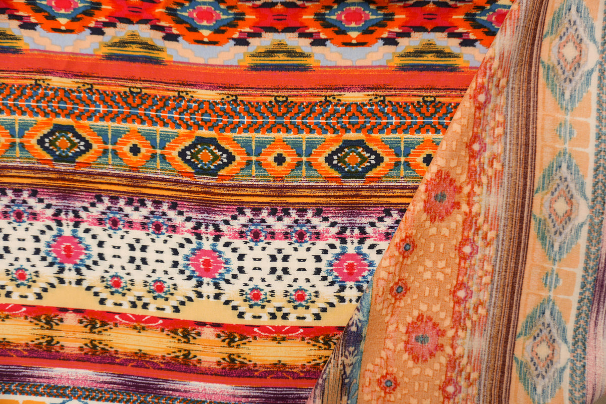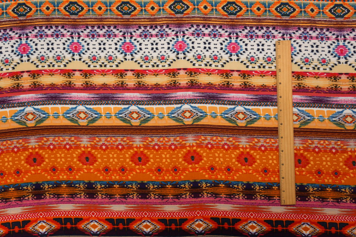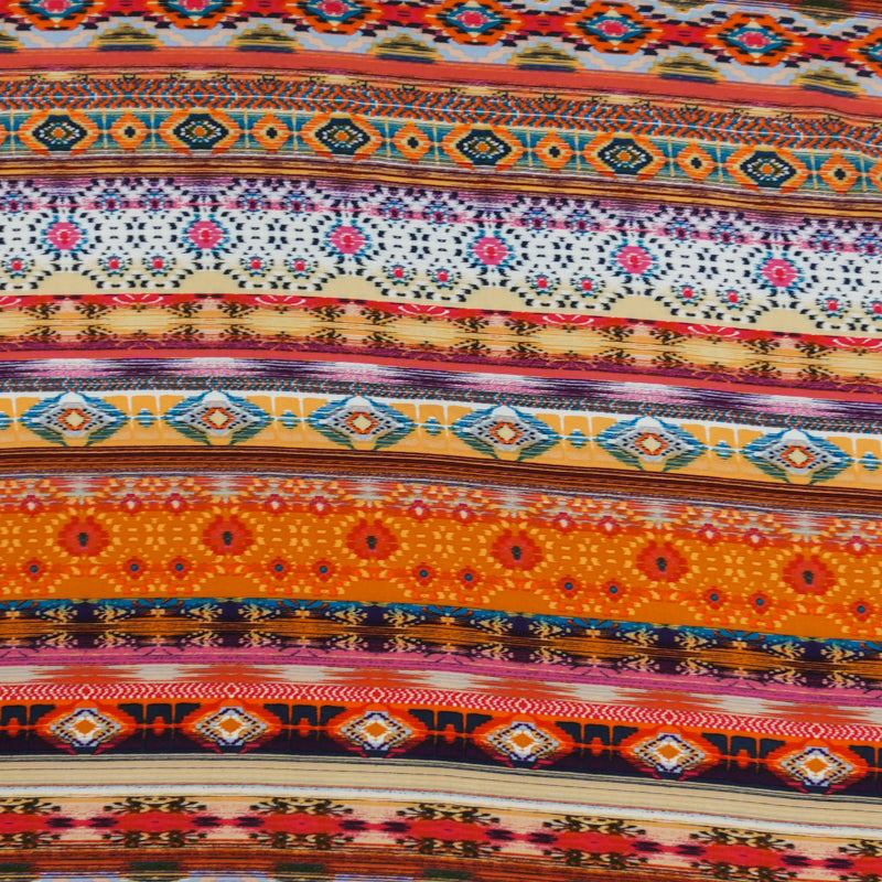 Orange-Yellow-Multi Rayon Aztec Printed Challis Woven Fabric