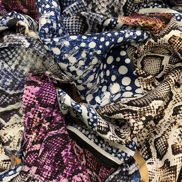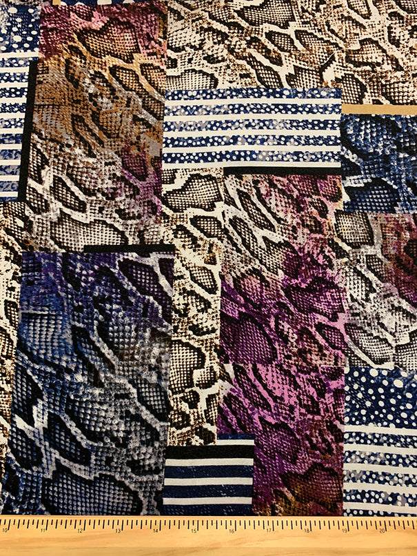 Purple and Blue Multi Animal Patchwork Print Rayon Challis Fabric