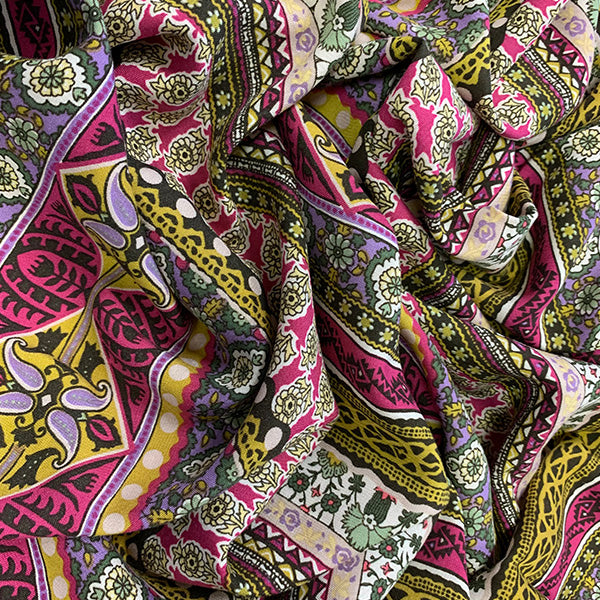 Purple and Magenta Multi Stripe Print Rayon Challis Fabric