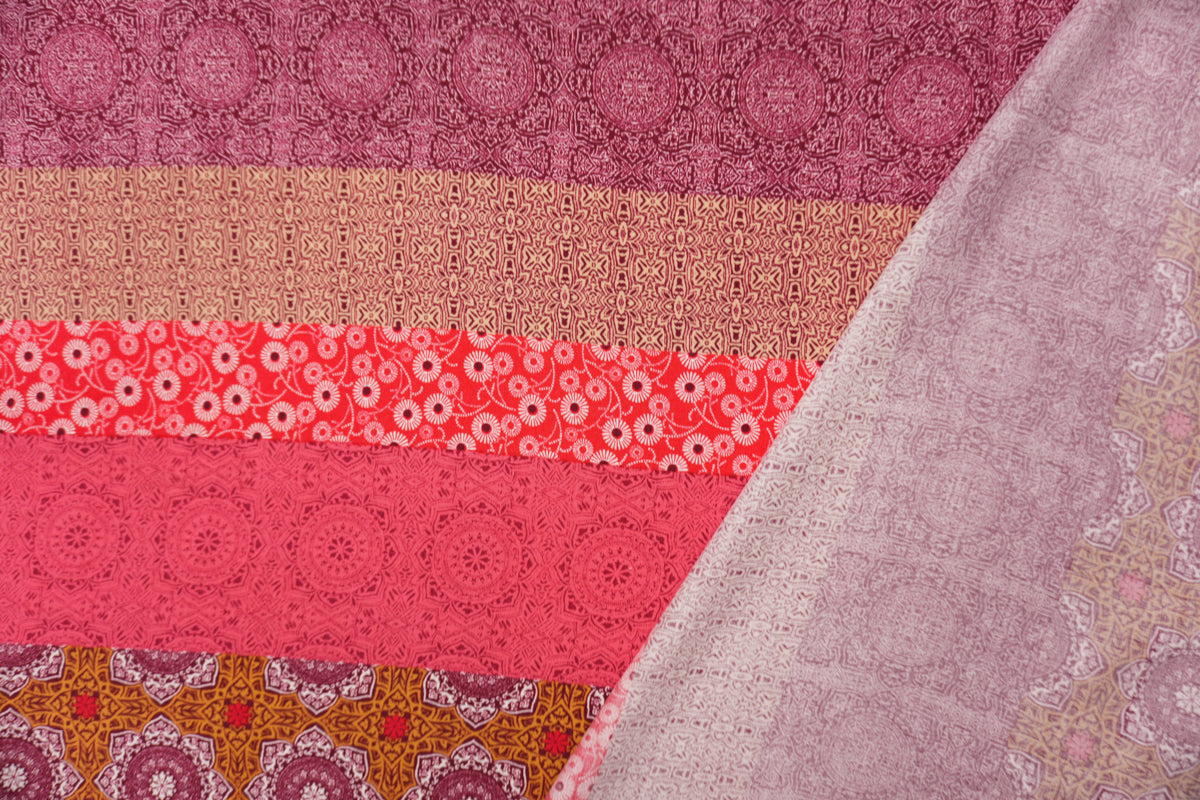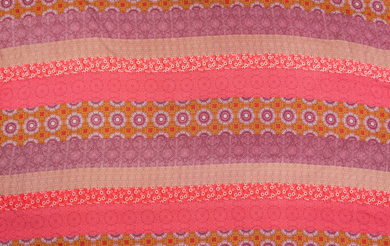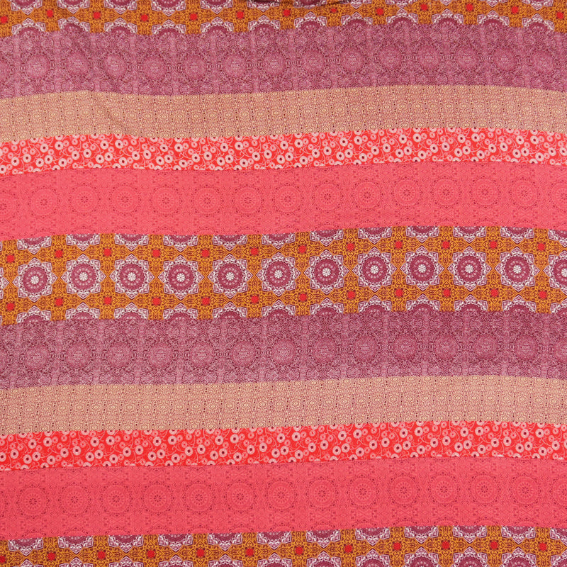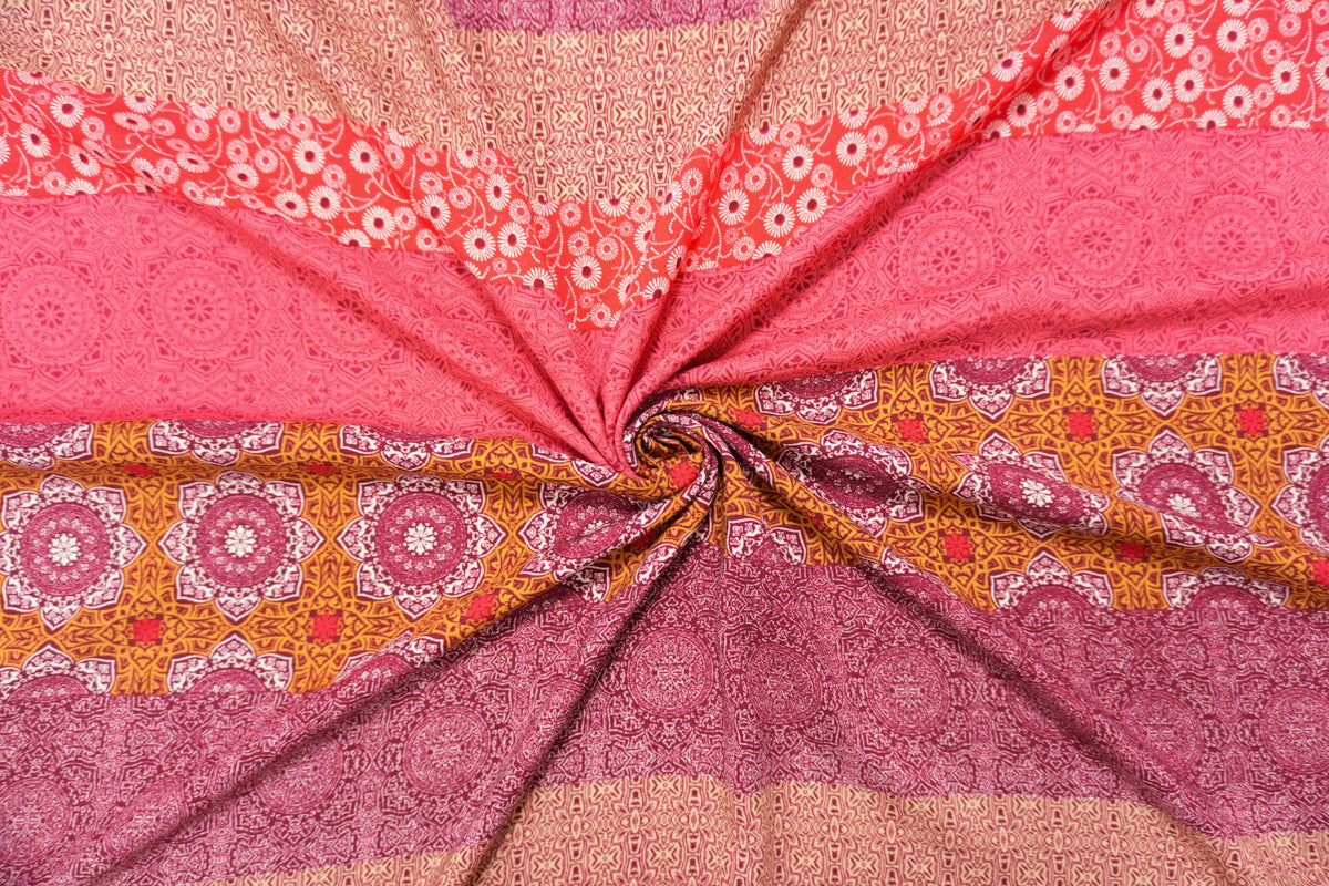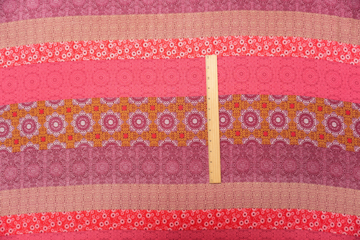 Red-Brown-Multi Rayon Stripe Moroccan Printed Challis Woven Fabric