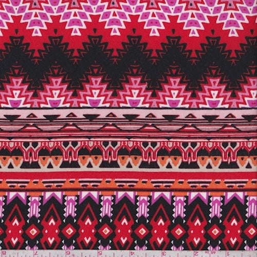 Red/Orange Aztec Stripe Rayon Challis Fabric