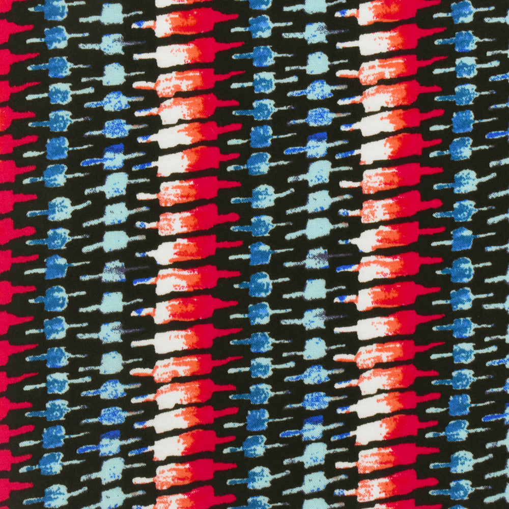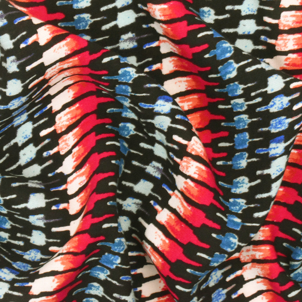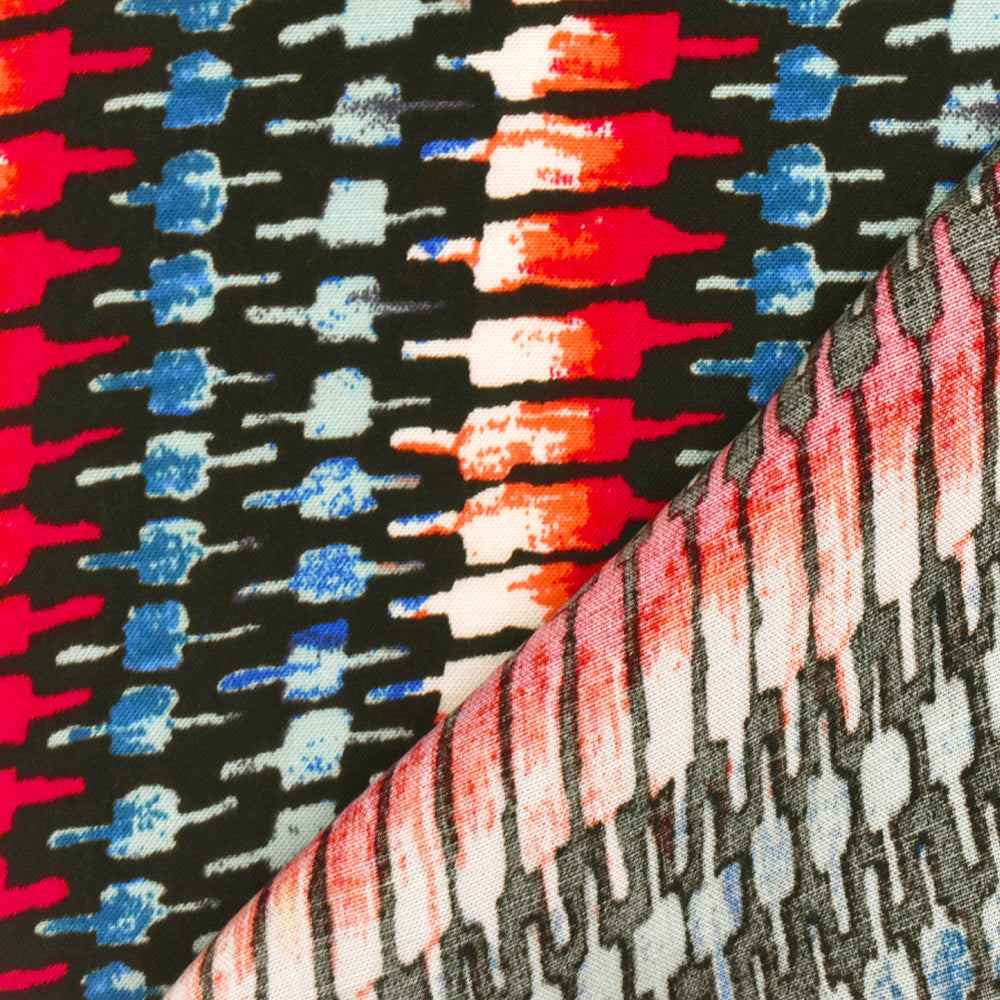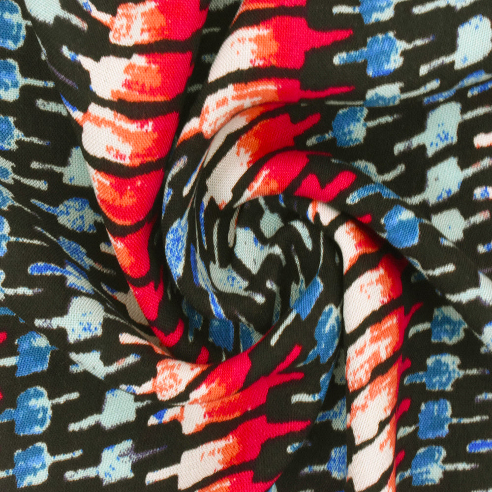 Red-Teal-Multi Tribal Printed Rayon Challis Woven Fabric