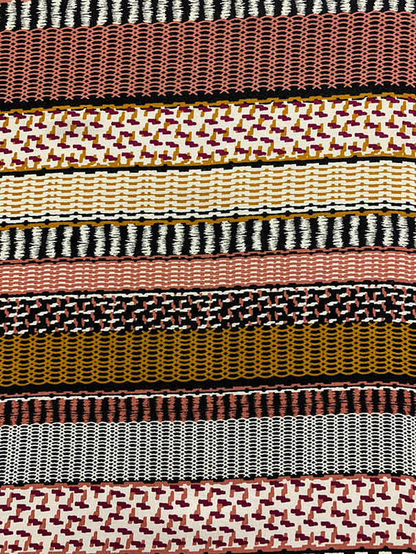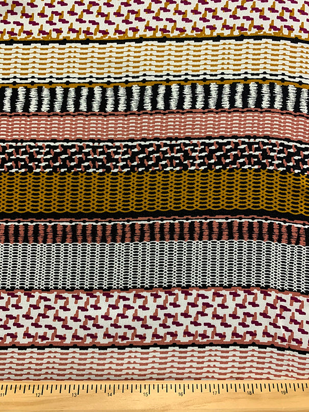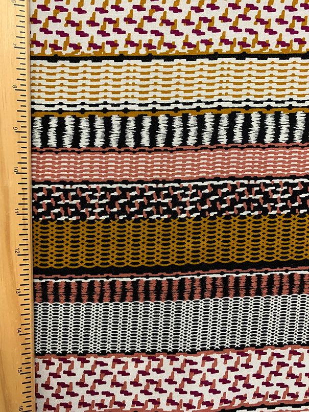 Rose and Copper Multi Stripe Print Rayon Challis Fabric