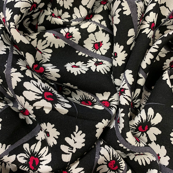 White and Red Daisy Print Rayon Challis Fabric