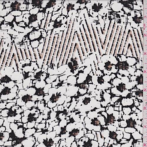 White/Black/Brown Floral Zag Rayon Challis Fabric