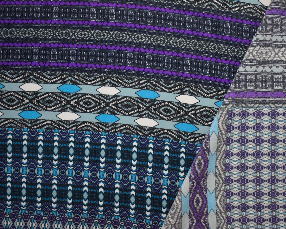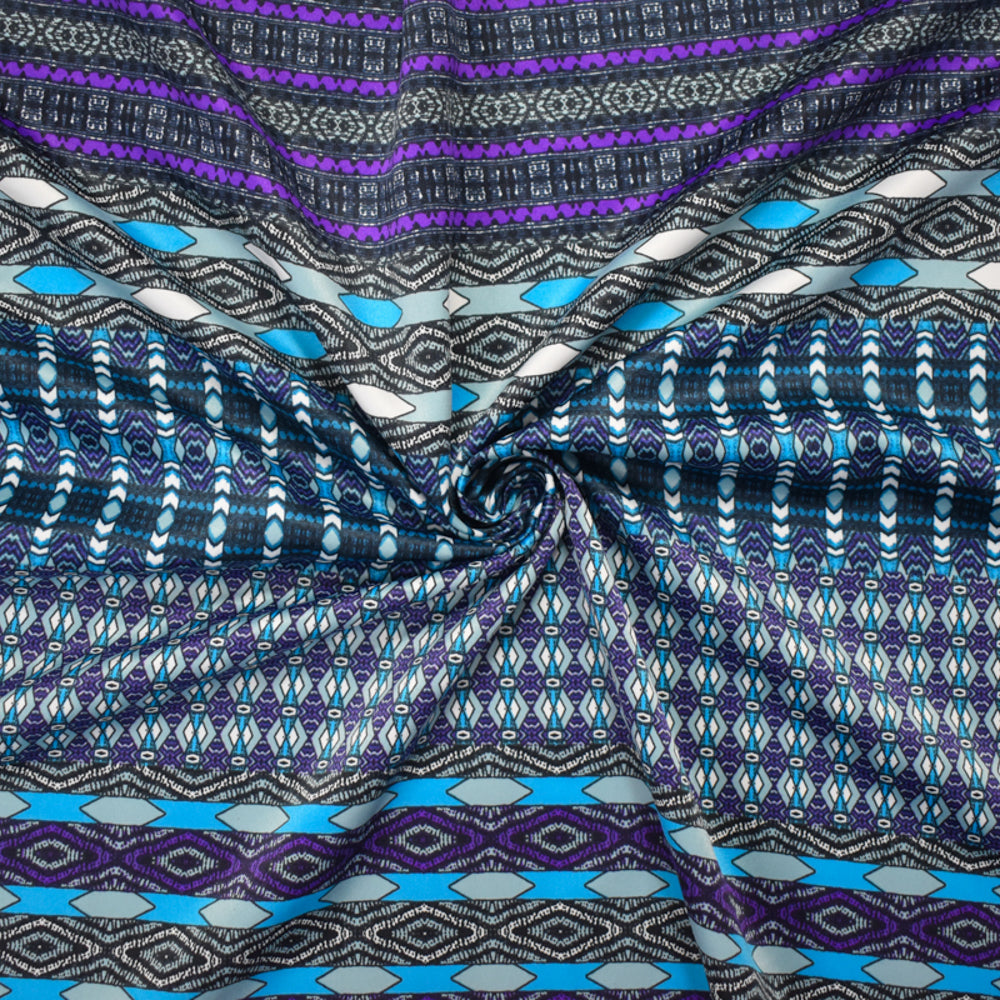 Turquoise-Purple-Multi Poly Aztec Border Printed Charmeuse Woven Fabric
