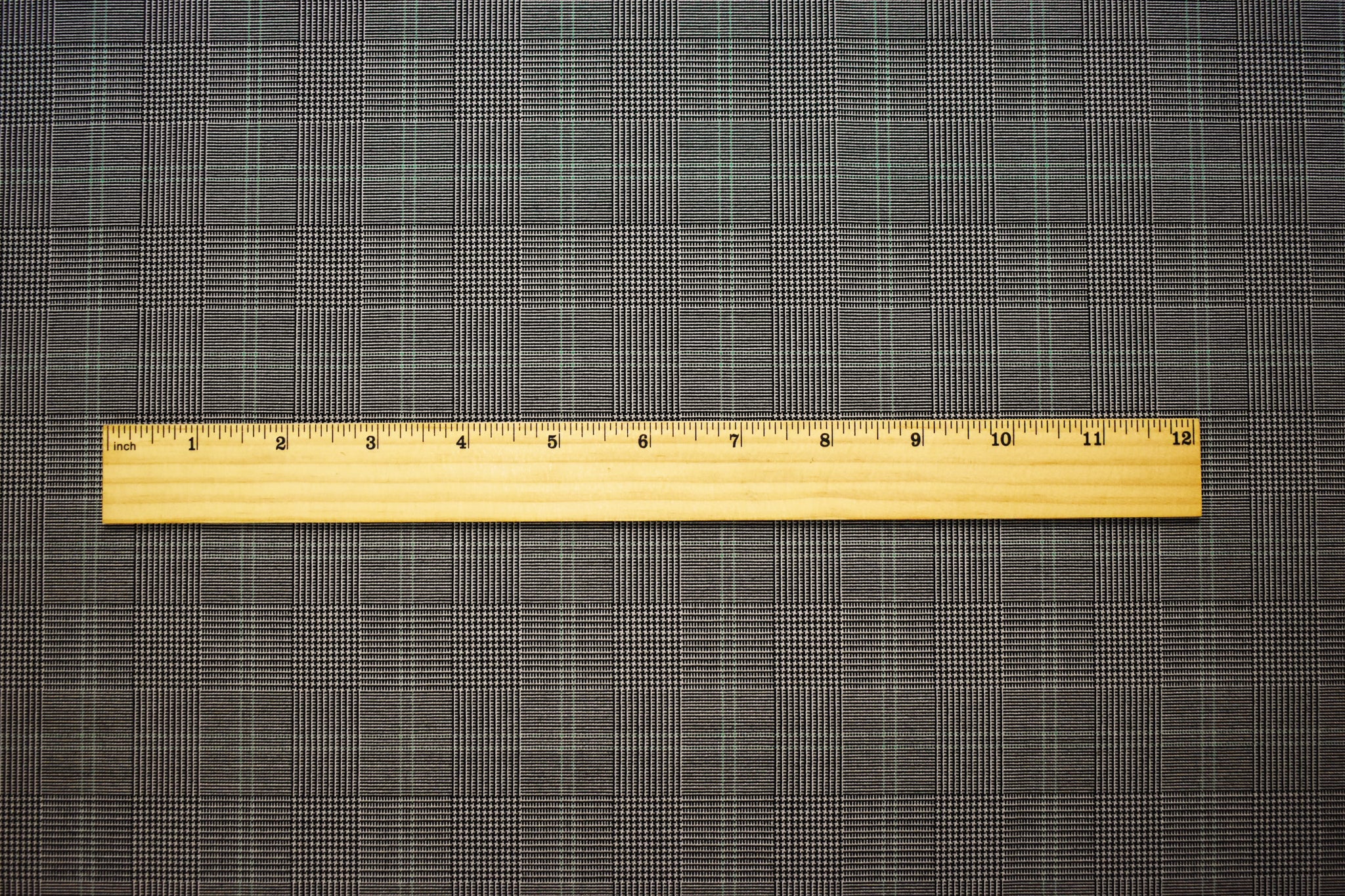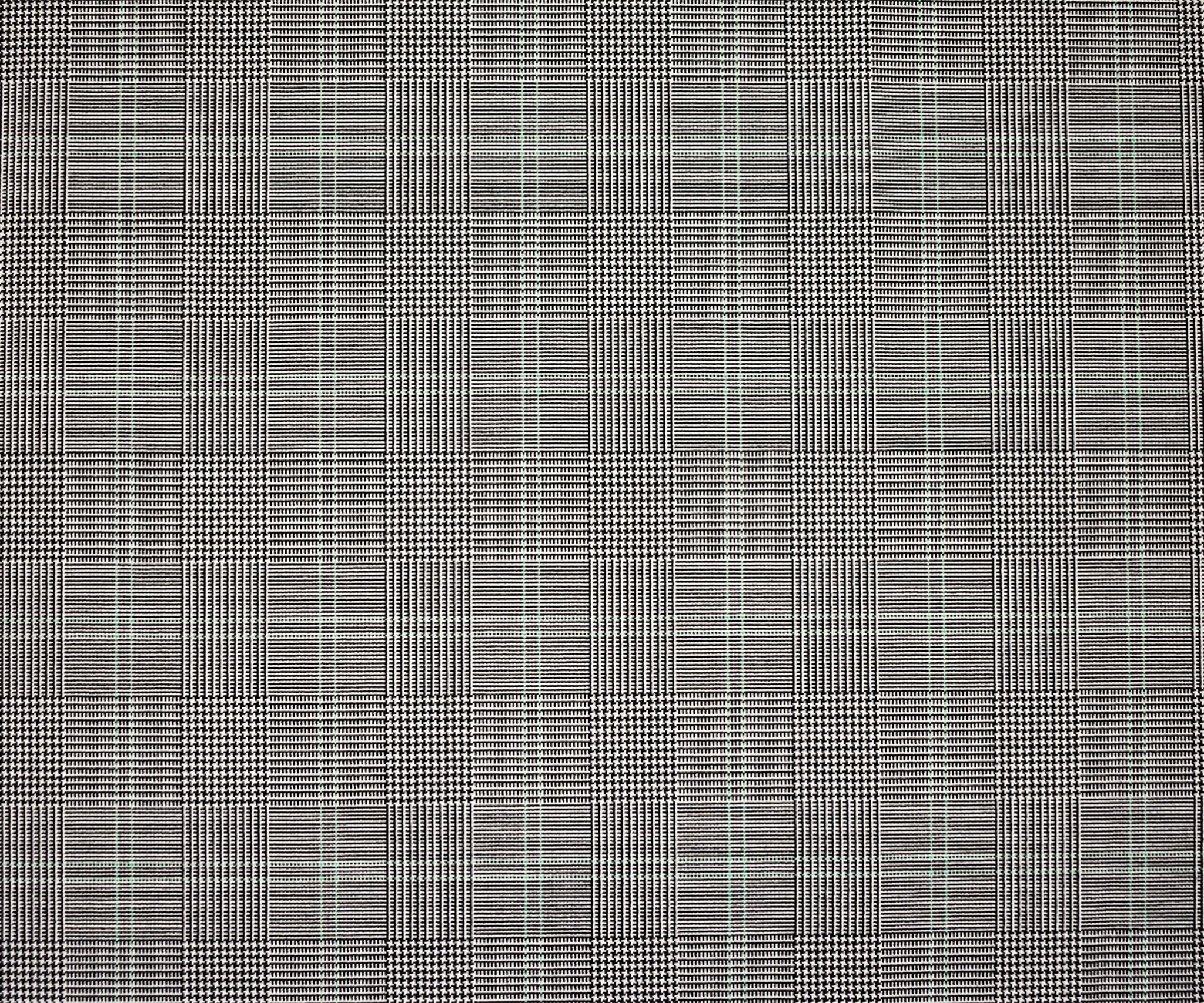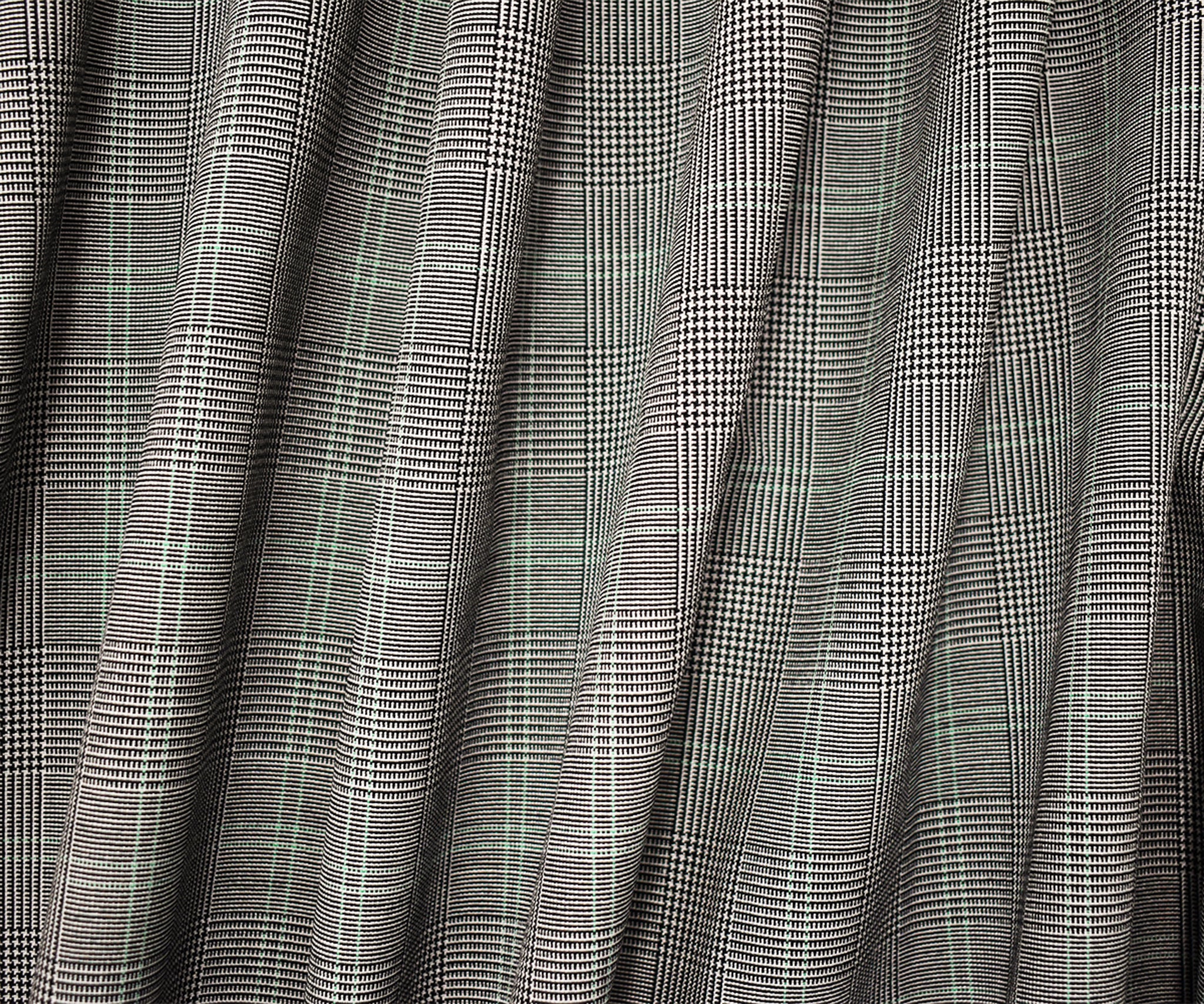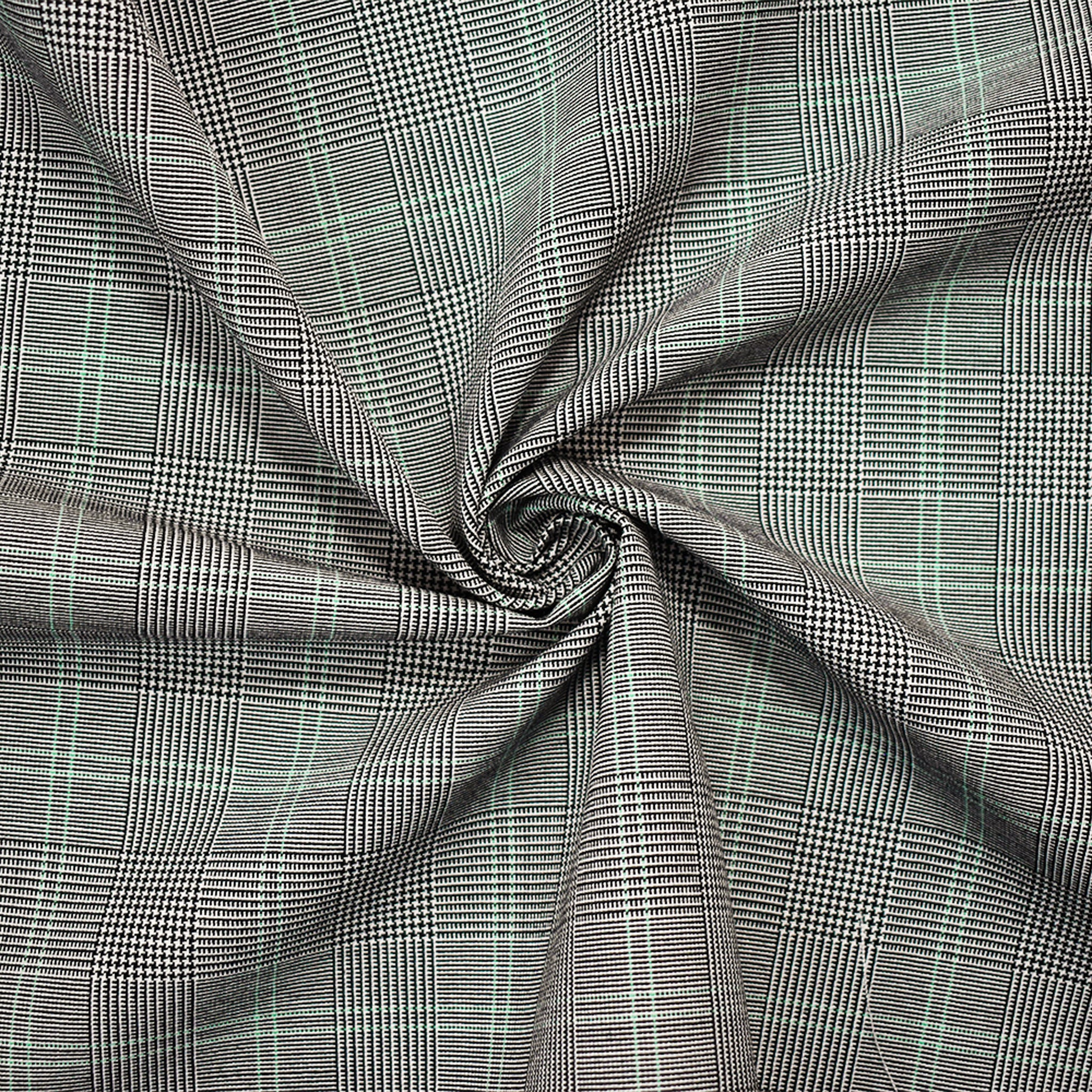 Black-Gray-Green Wool-Polyester Glen Plaid Woven Shirting Fabric