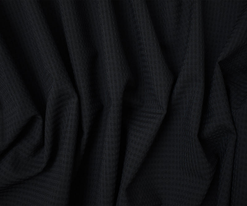 Black-Navy Poly Wool Check Dobby Woven Suiting Fabric
