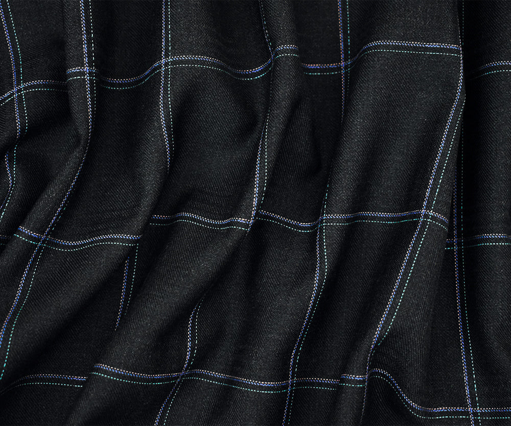 -Polyester and wool blend grid plaid/check pattern twill woven shirting fabric. Made in Japan.