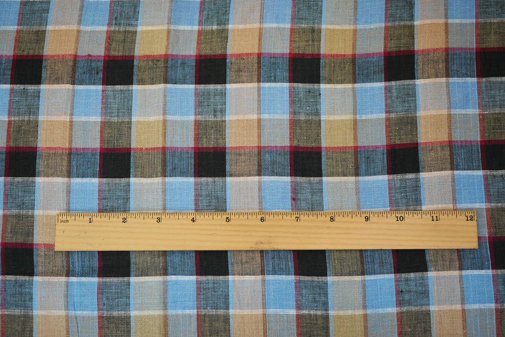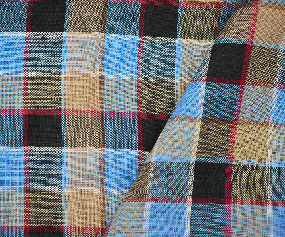 Blue-Beige-Multi Check Linen Woven Fabric