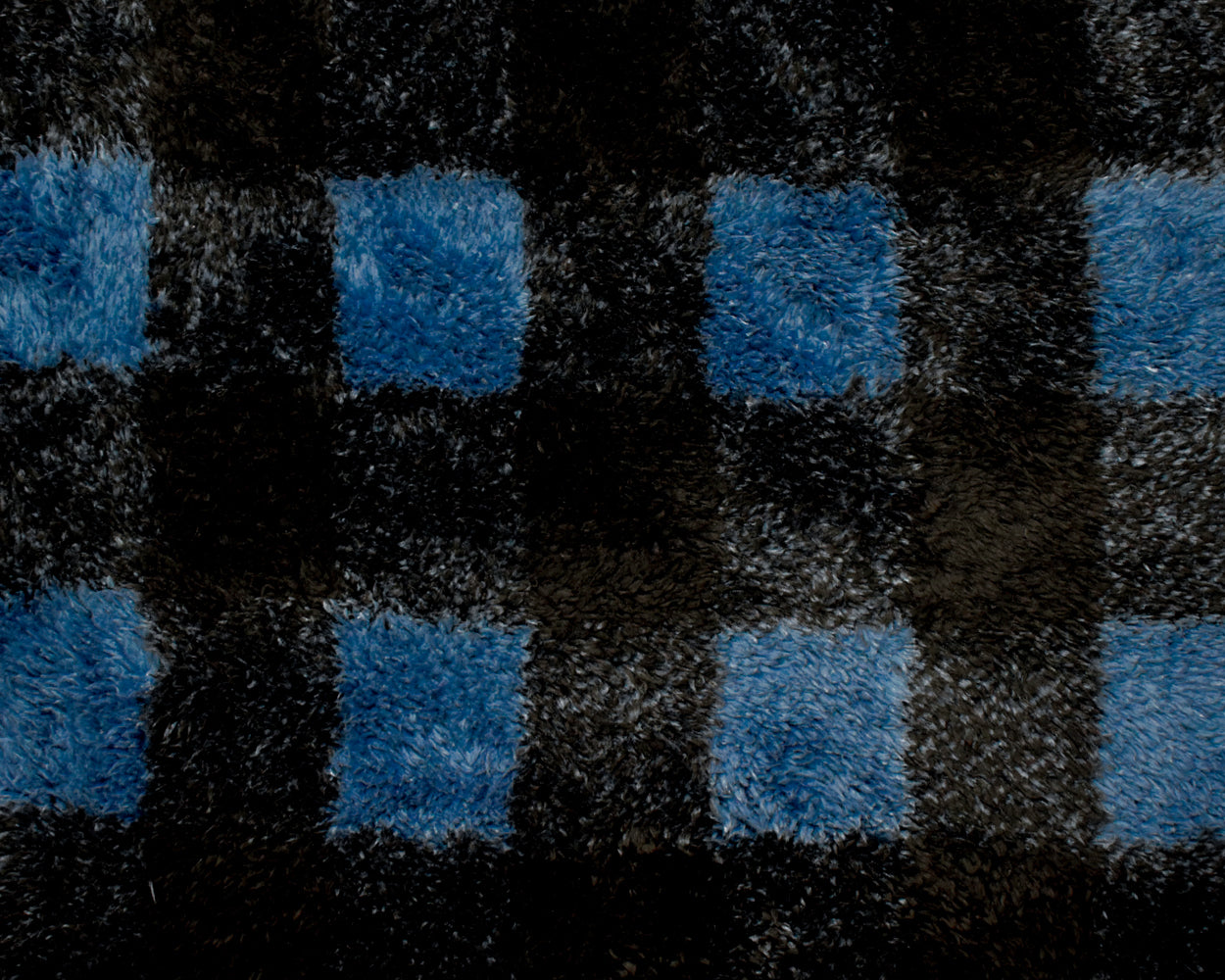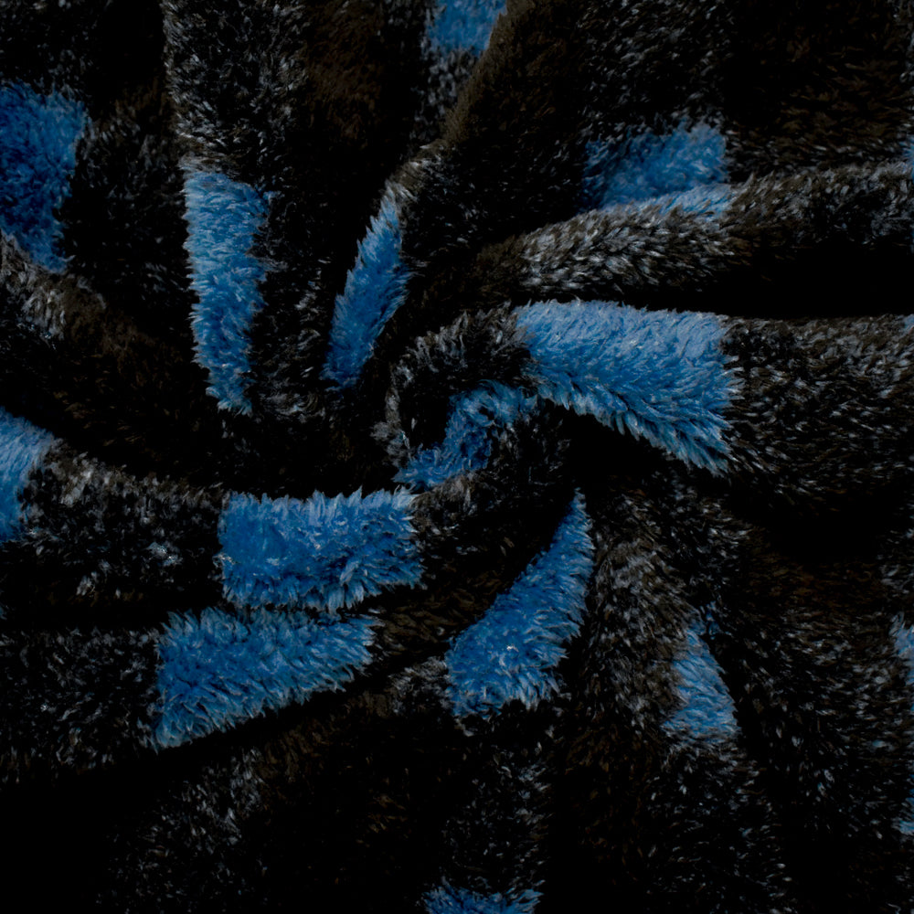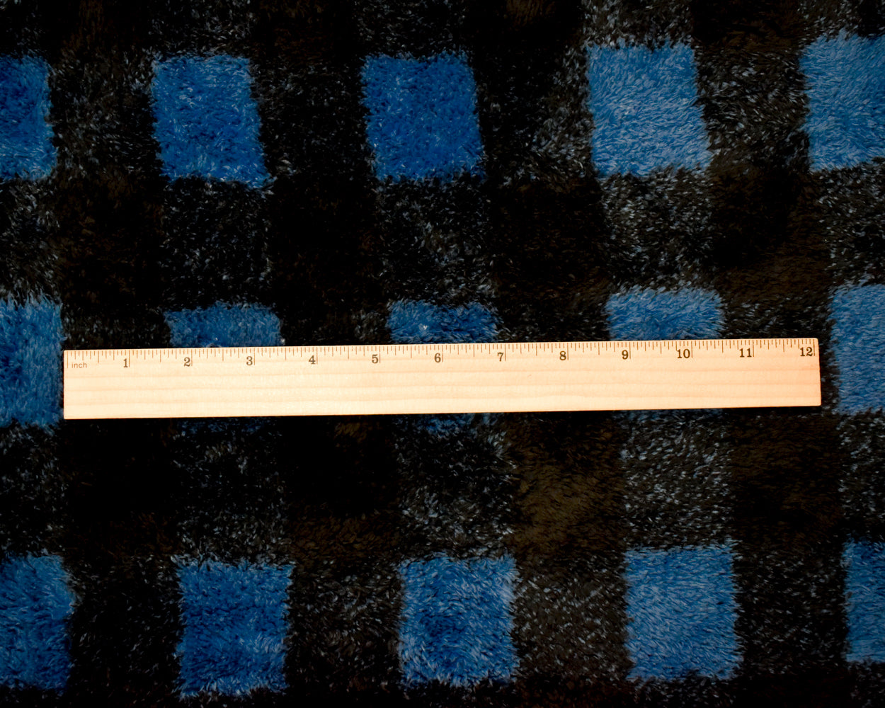 Blue-Black Polyester Check Plaid Double Sided Fleece Knit Fabric