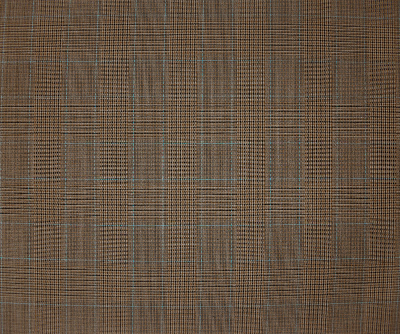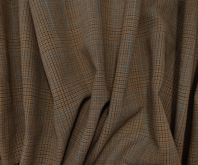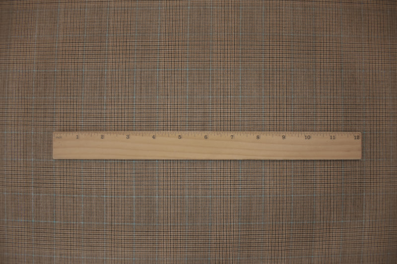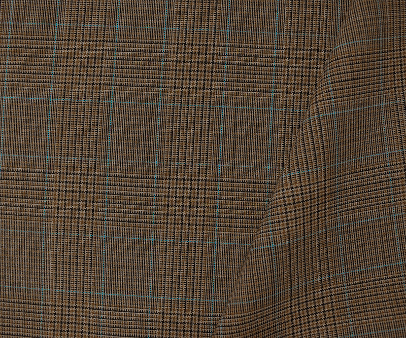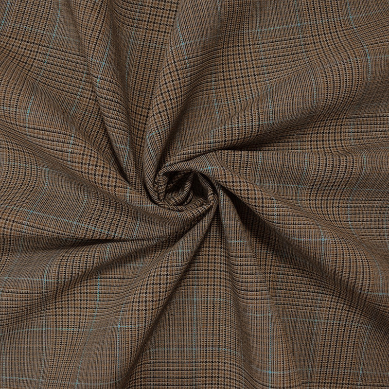 Brown-Blue-Black Tropical Poly Wool Plaid Woven Shirting Fabric