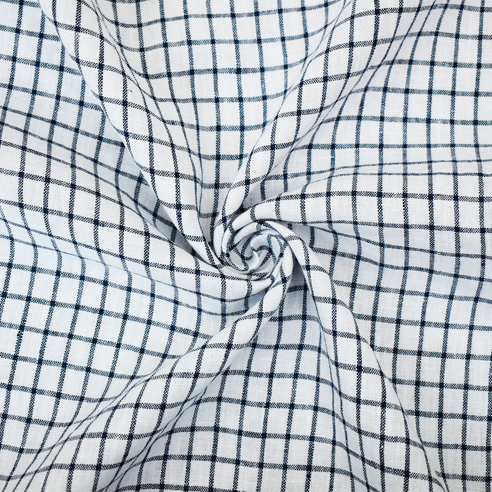 Deep Blue-White Moygashel Washed Grid Check Irish Linen Woven Fabric