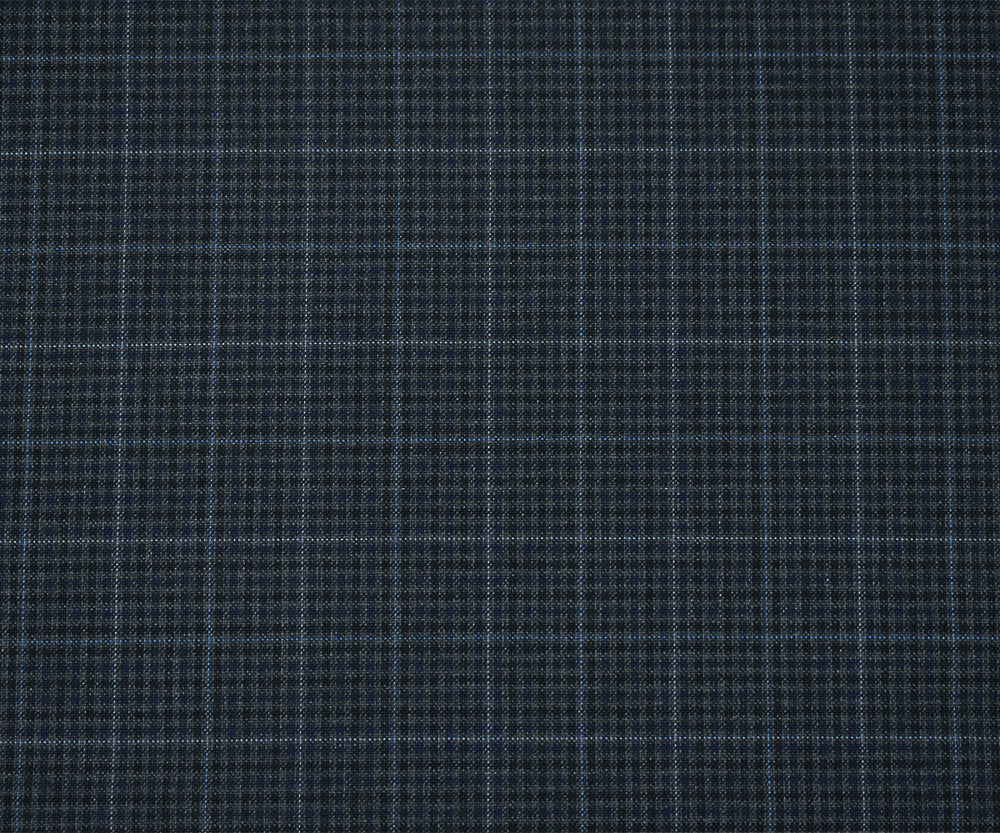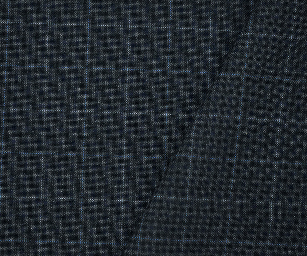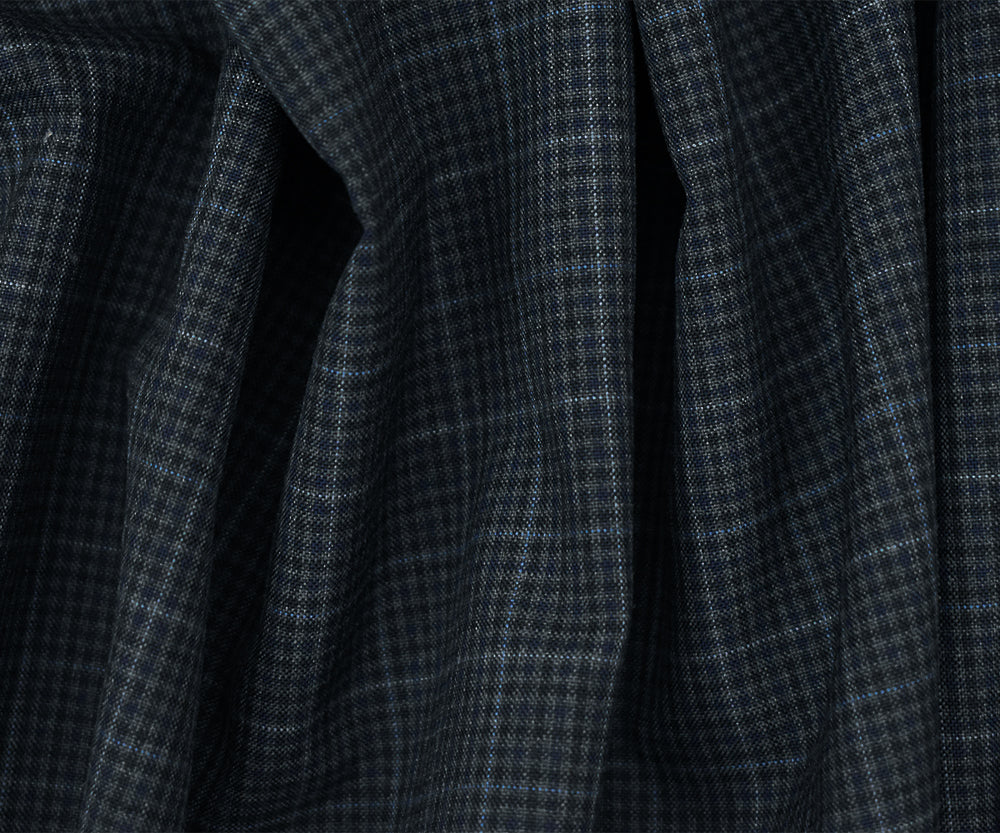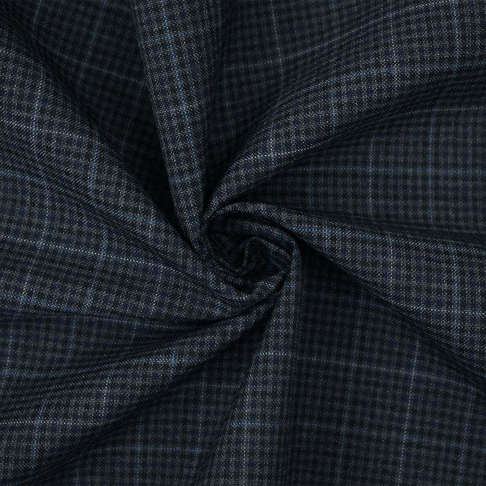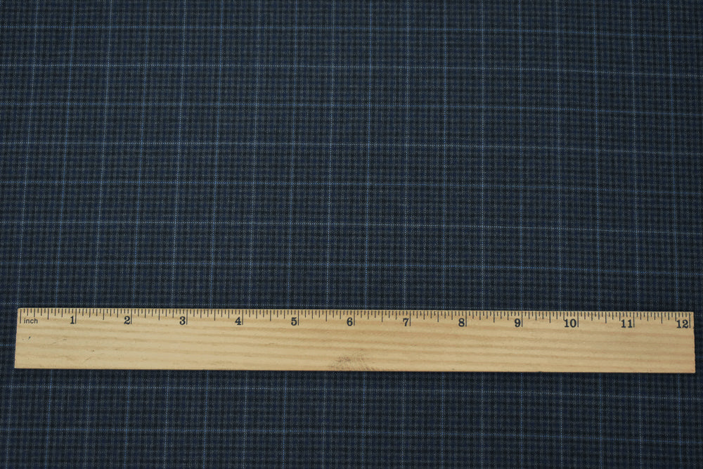 Gray-Black-Blue Poly-Wool Gingham Plaid Woven Shirting Fabric