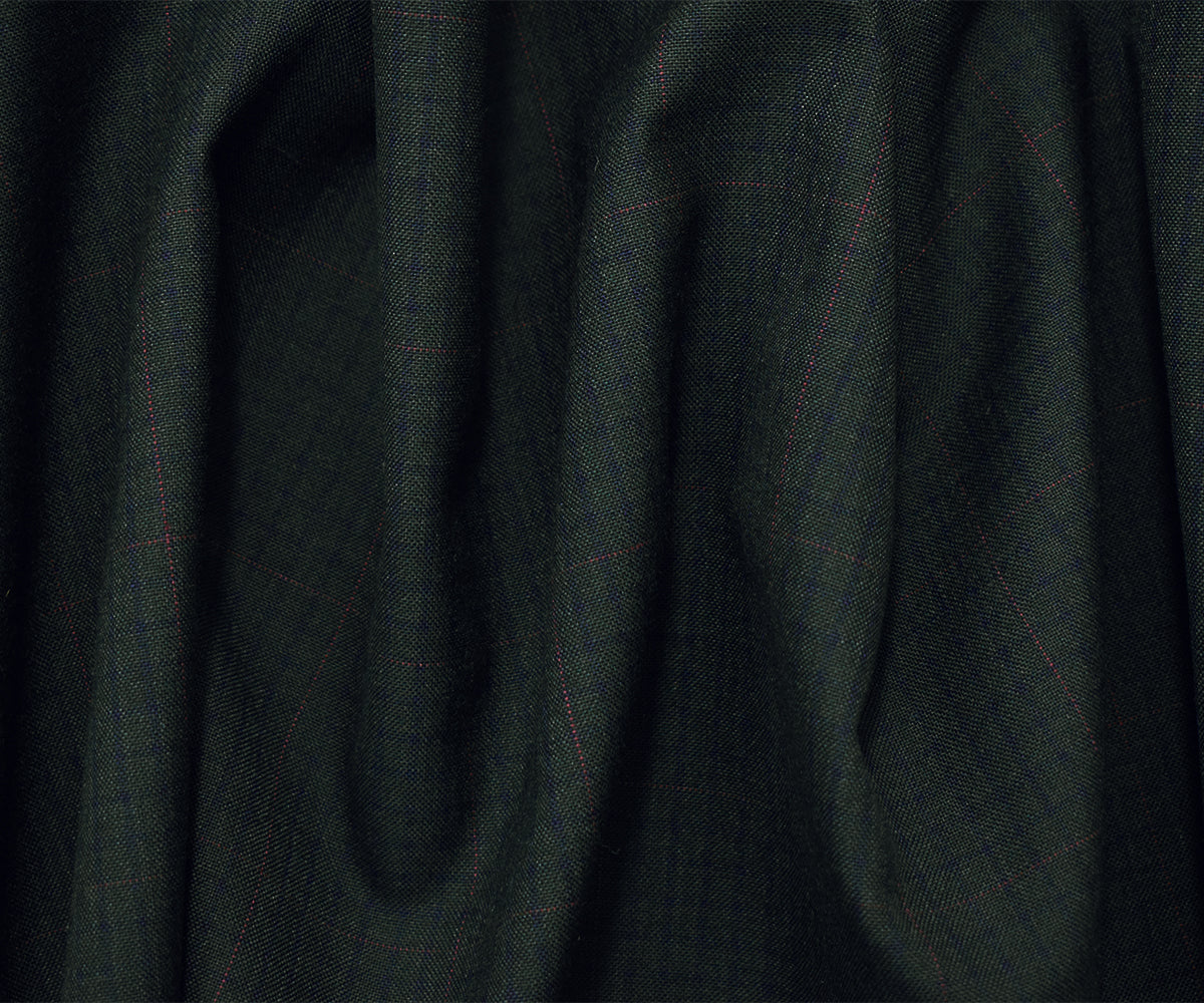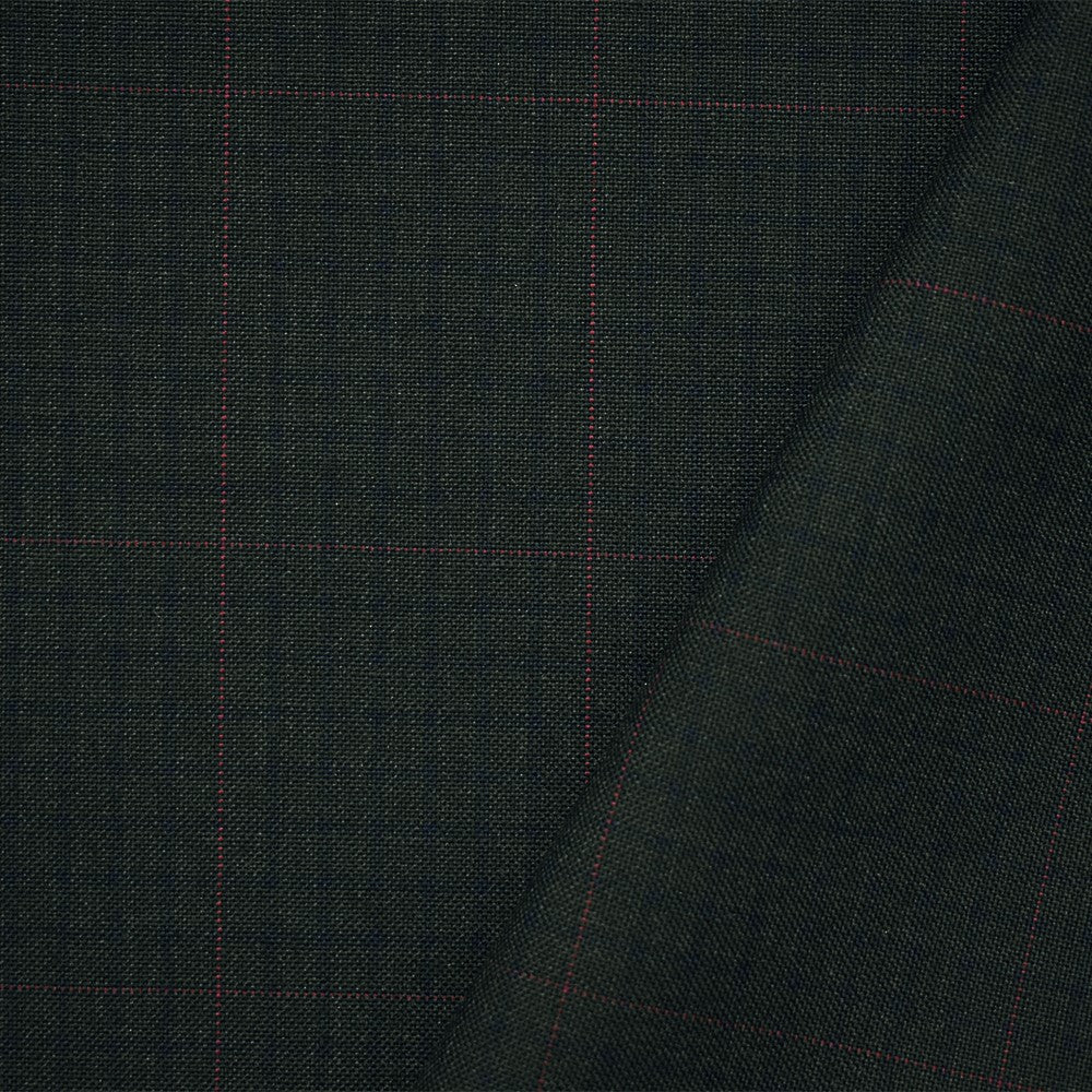Gray-Blue-Red Wool-Poly Plaid Check Woven Shirting Fabric
