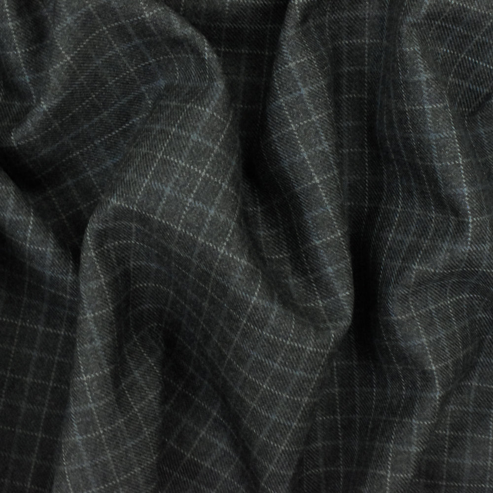 Gray-Multi Check Wool Polyester Twill Woven Suiting Fabric