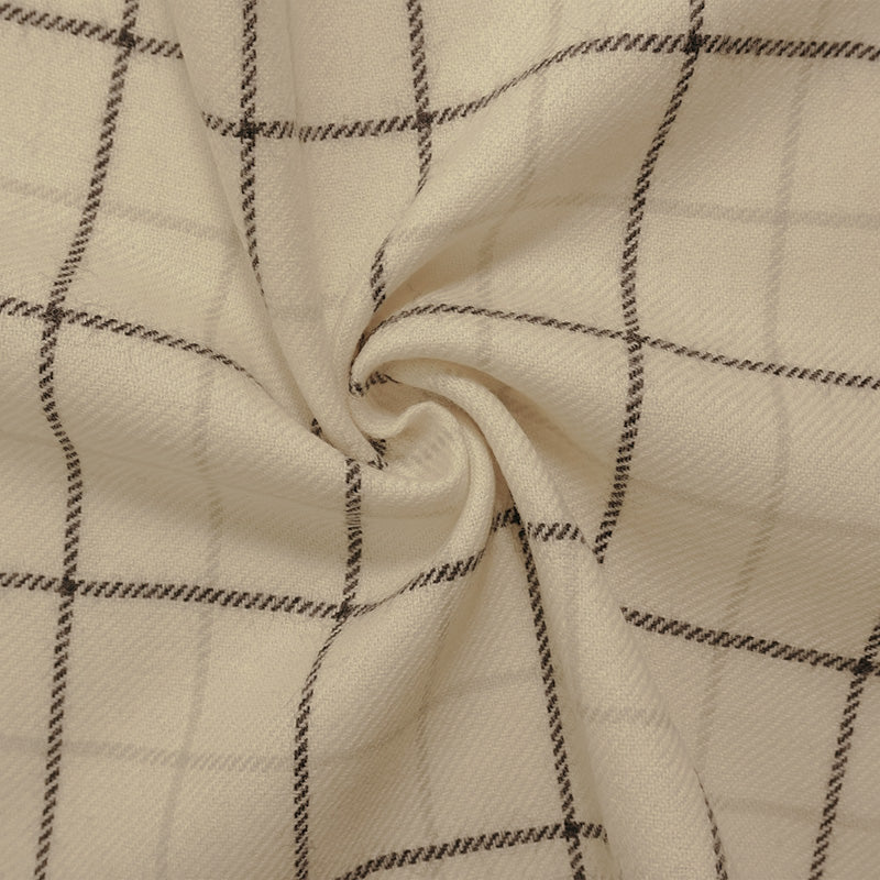 Ivory-Multi Wool-Poly Check-Plaid Twill Woven Jacketing Fabric