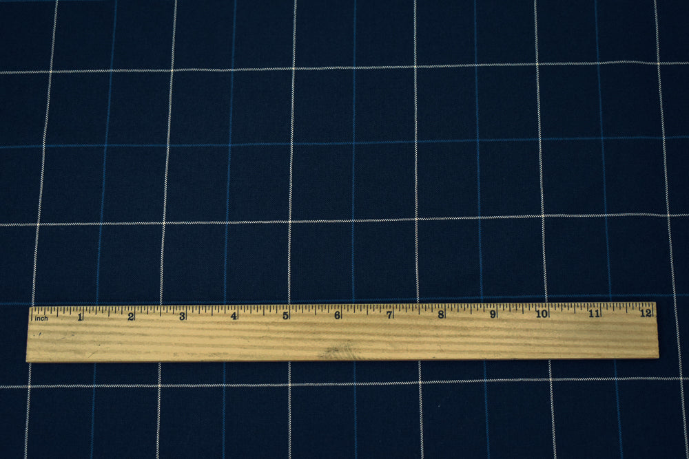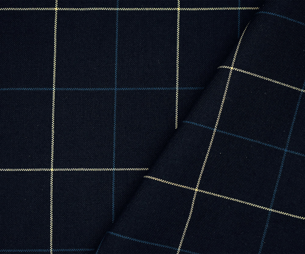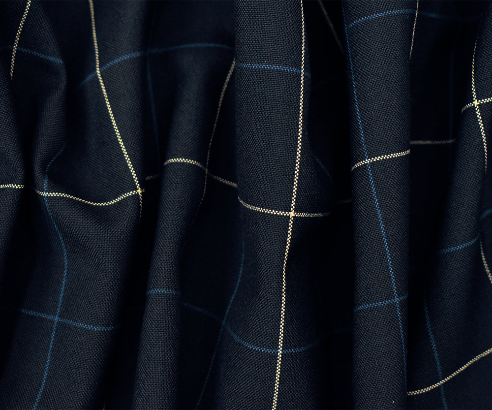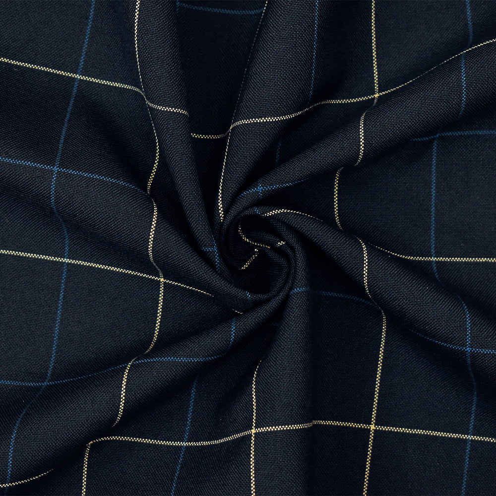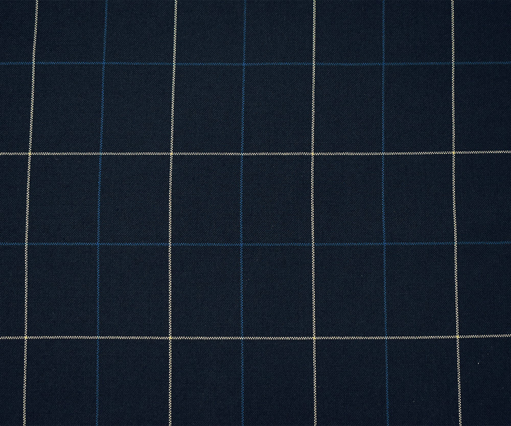 Navy-Blue-Ivory Polyester-Wool Check Woven Shirting Fabric