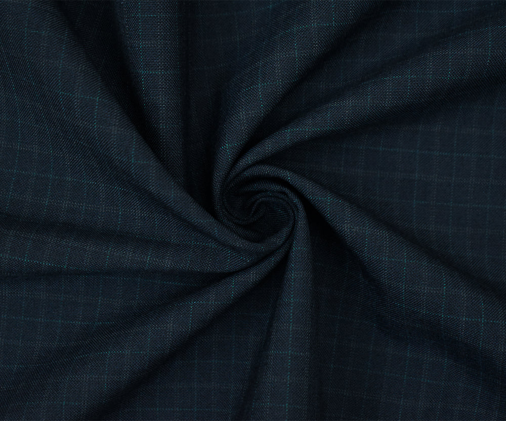 Navy-Gray-Green Wool Polyester Check Pattern Shirting Woven Fabric