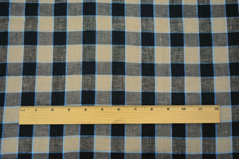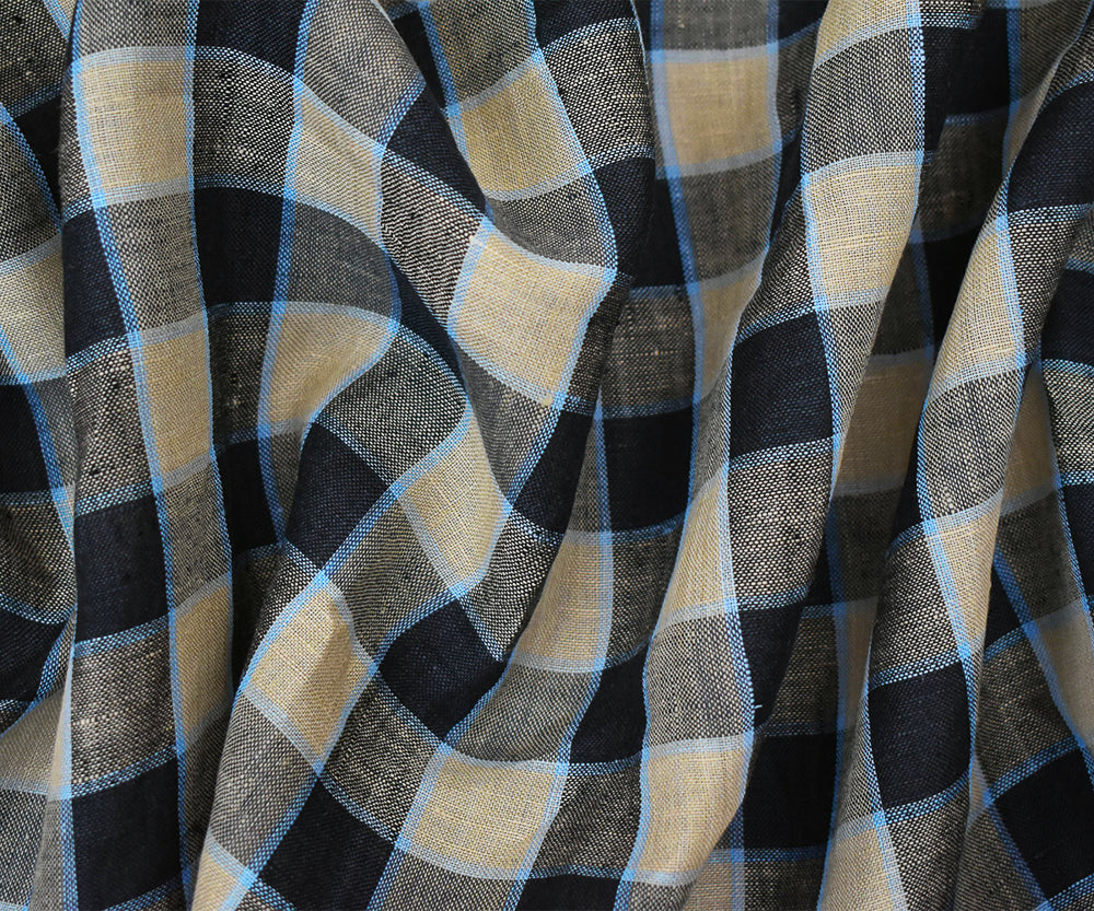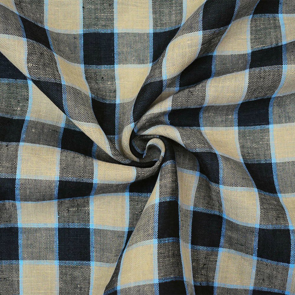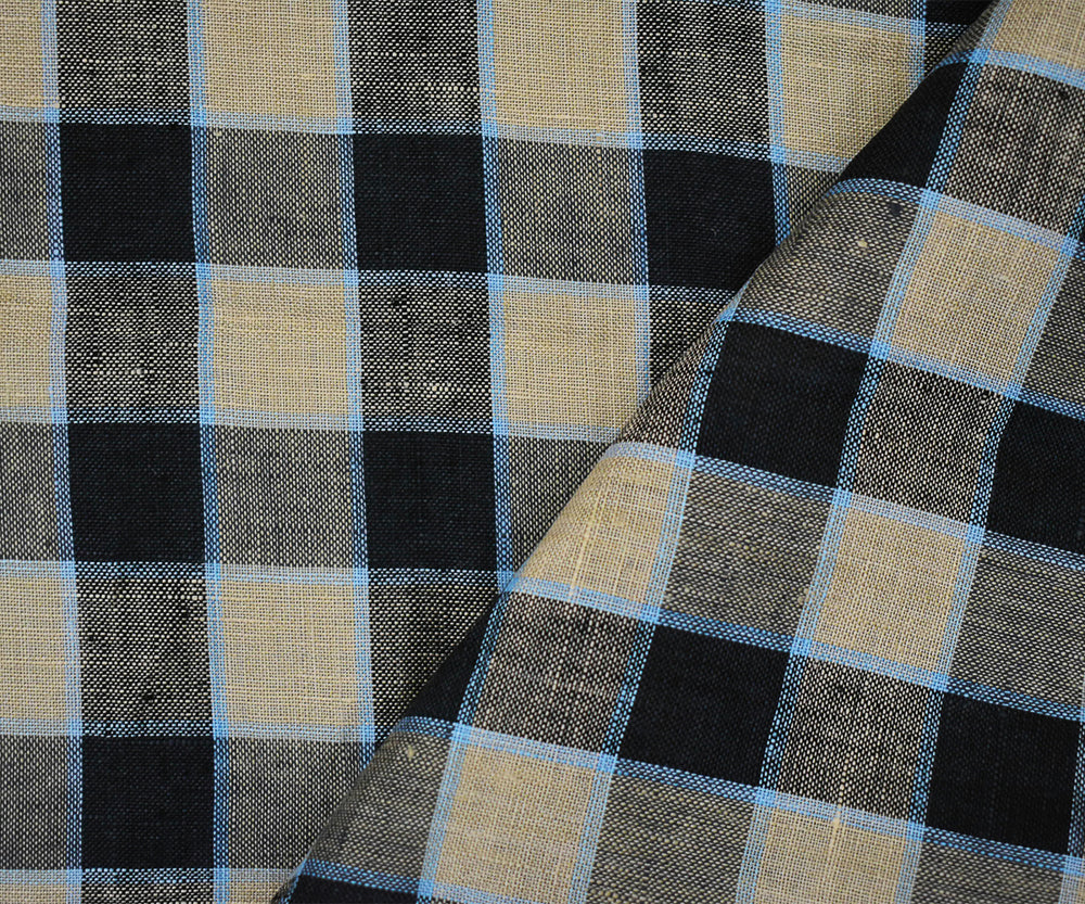 Taupe-Black-Beige Check Linen Woven Fabric