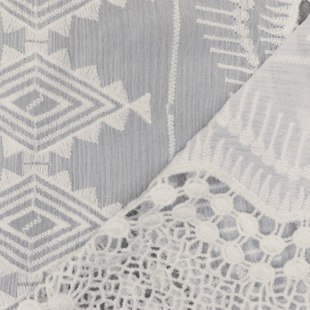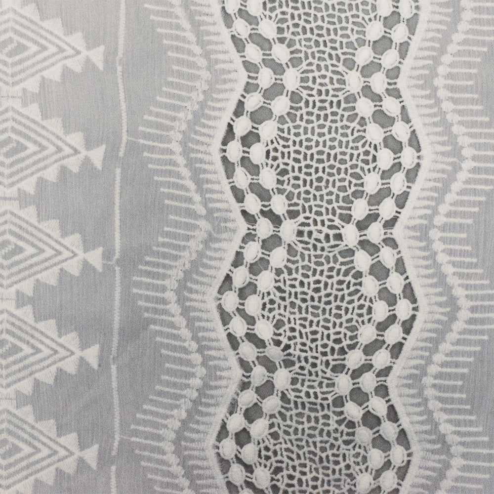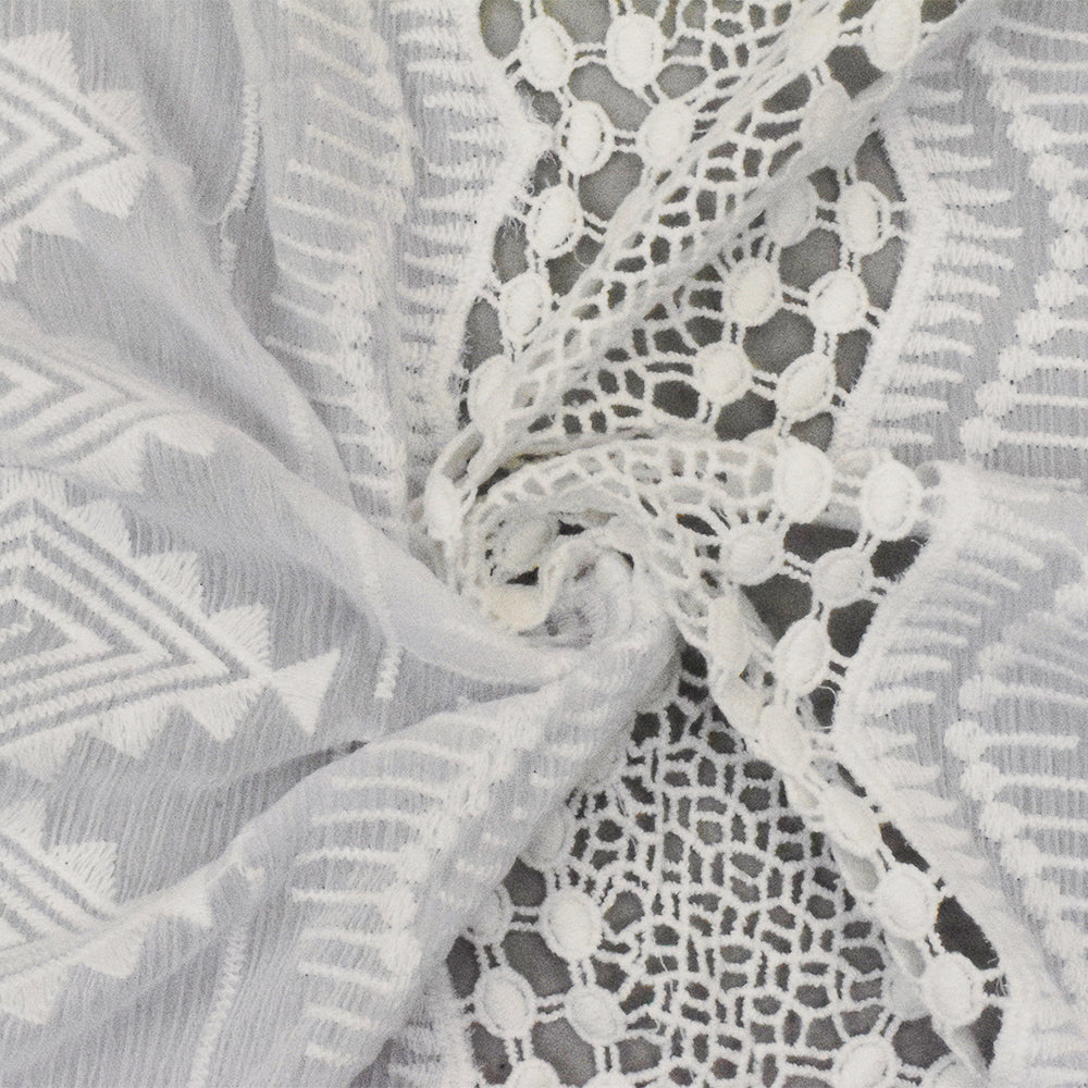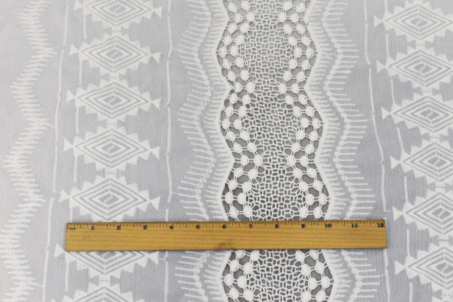 3 YD PC-Snow White Aztec Embroidered and Lace Poly Yoryu Chiffon Woven Fabric
