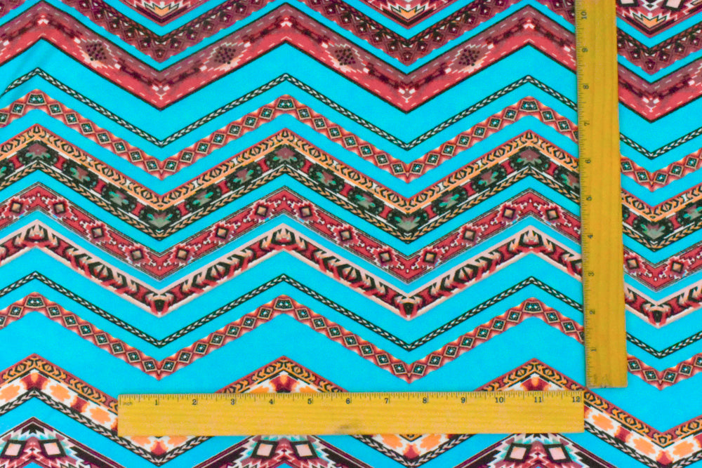 Aqua-Red-Multi Tribal Chevron Printed ITY Knit Fabric