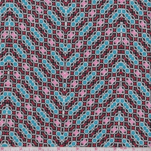 Black/Aqua Mini Medallion Chevron Techno Crepe Knit Fabric