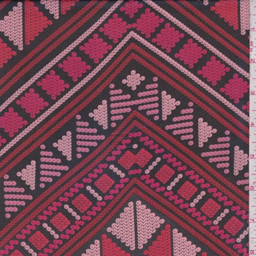 Black/Ruby/Pink Deco Chevron Chiffon Fabric