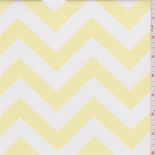 "Zig Zag" print by Premier Prints. A soft yellow and white horizontal chevron print. This lightweight 7 oz cotton poplin has a smooth surface and crisp hand.