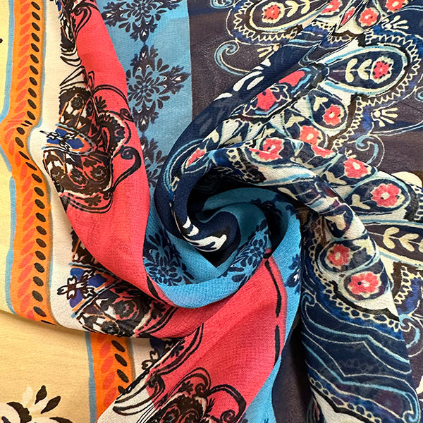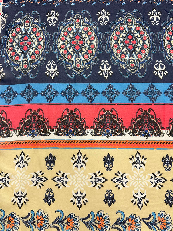 Beige Multi Floral Medallion Print Stripe Chiffon Fabric