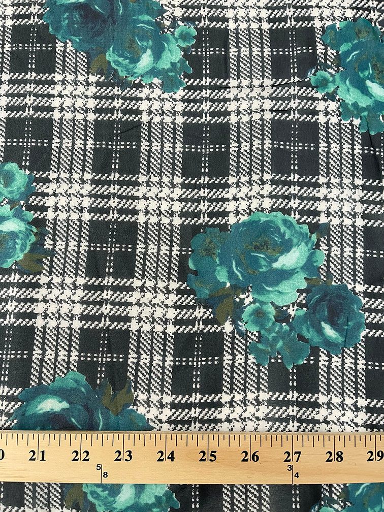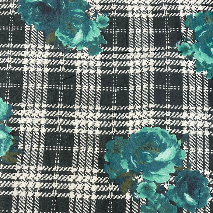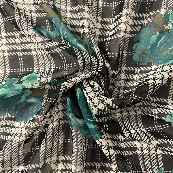 Black and White Glenplaid Floral Print Chiffon Fabric