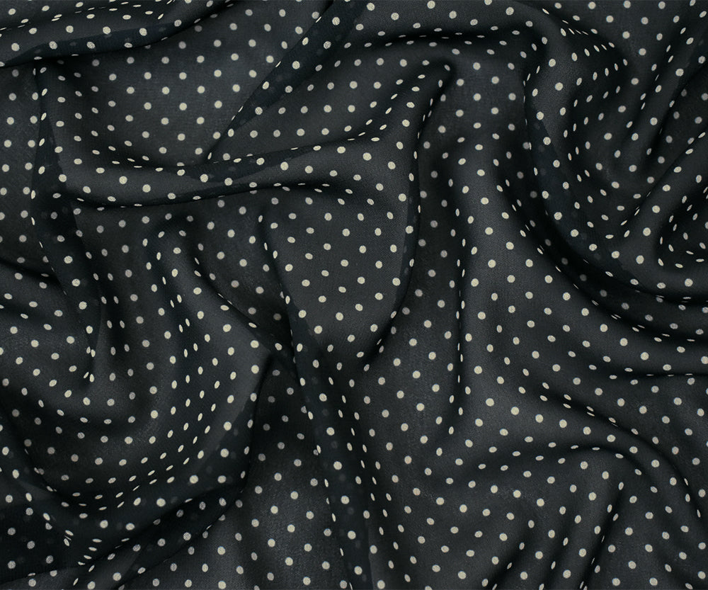-100% polyester chiffon printed with polka dots. Made in Japan.