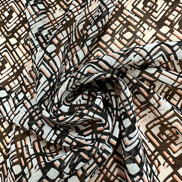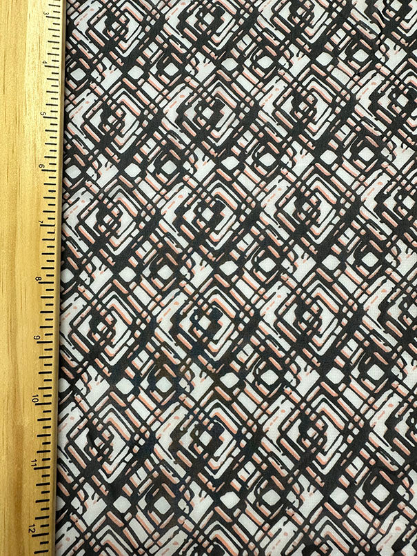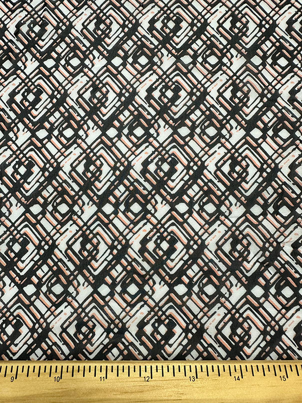 -Black & Coral Diamond Print on White Poly Sheer Chiffon Fabric