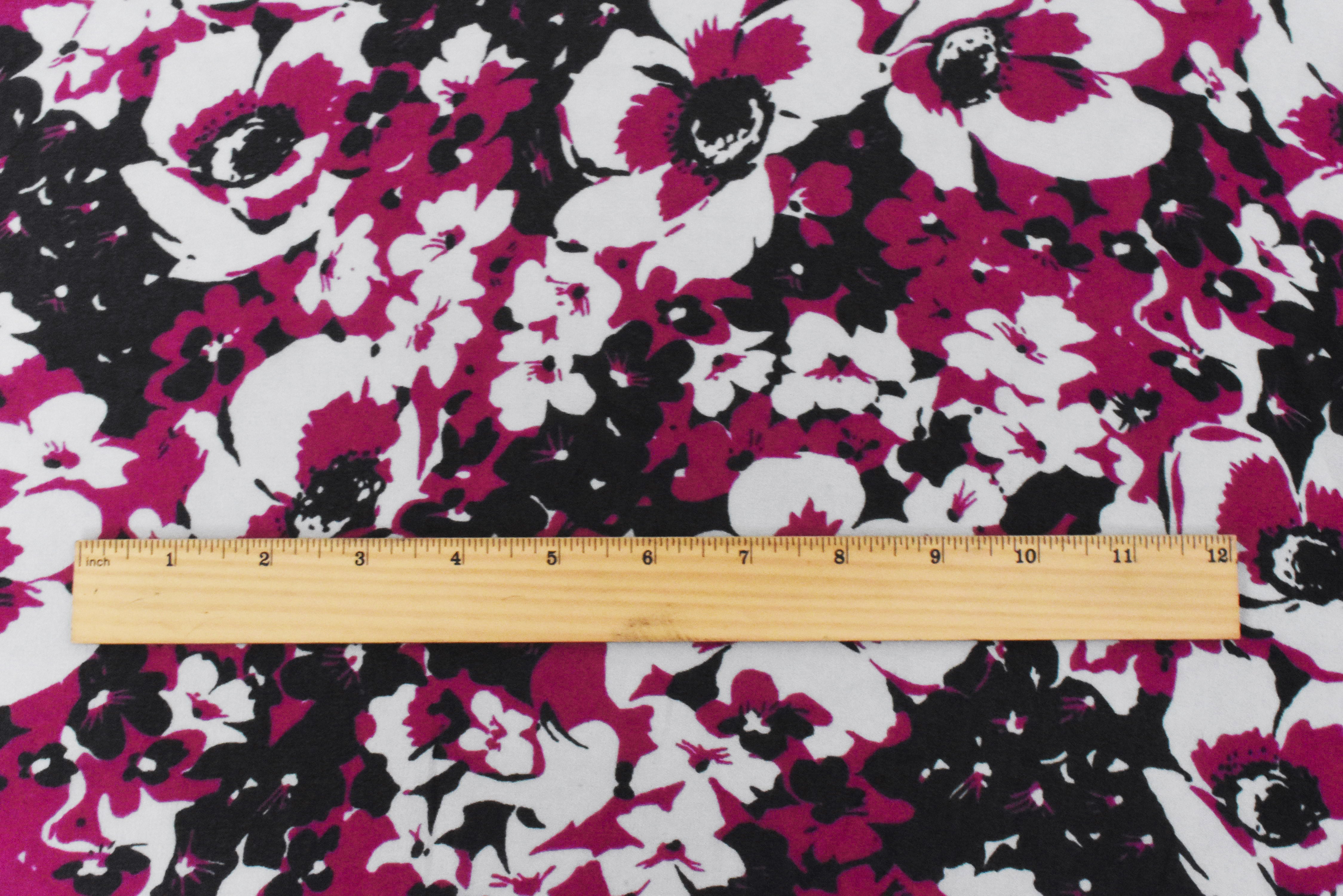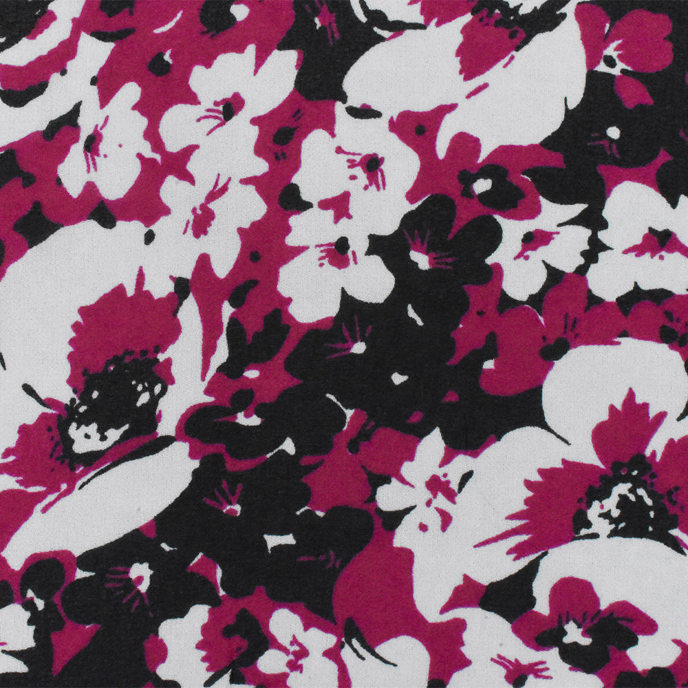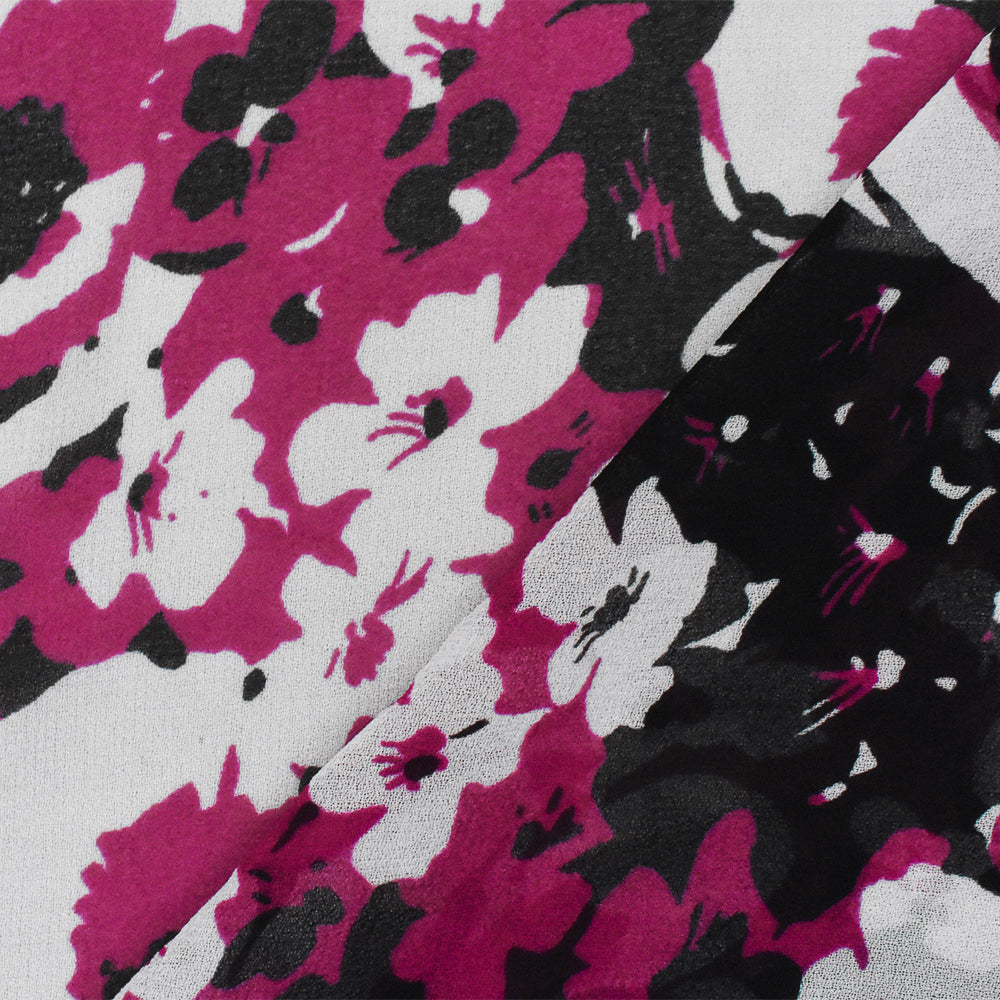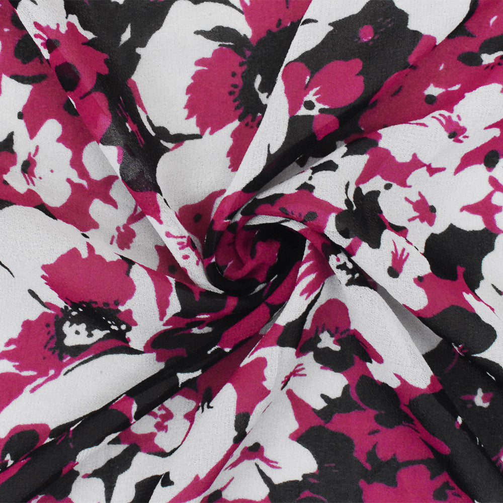 Black-Magenta-Ivory Floral Printed Poly Chiffon Woven Fabric