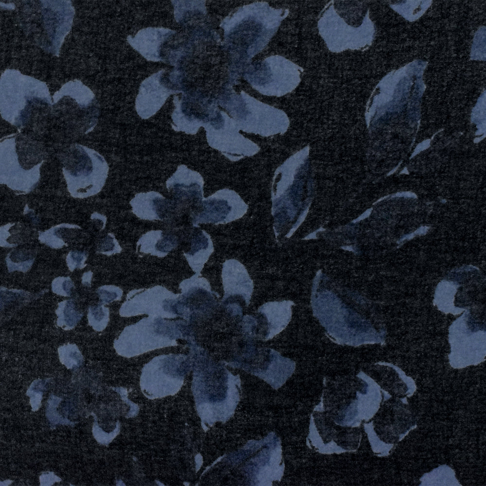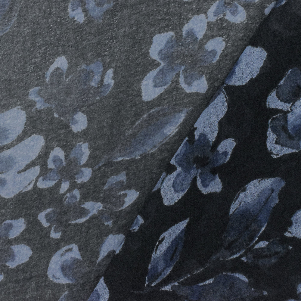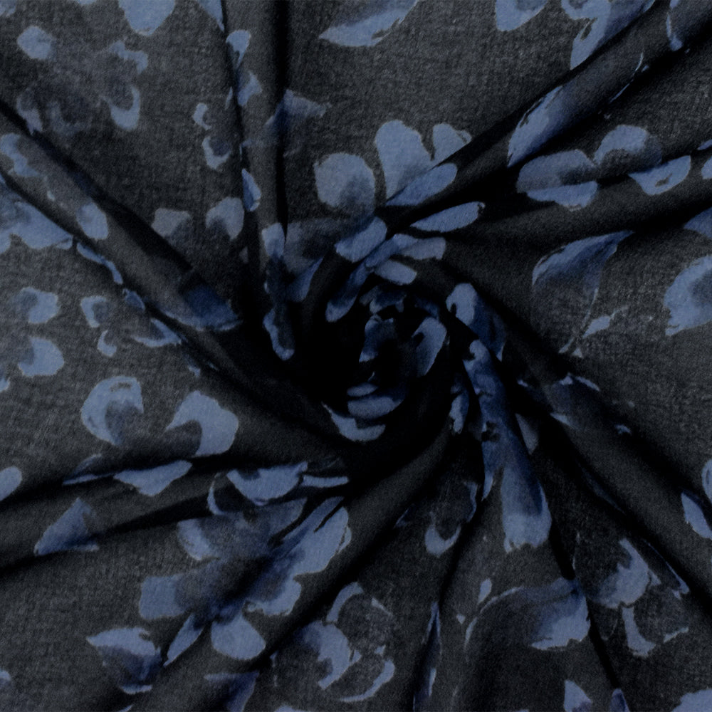 Black-Mauve-Blue Floral Printed Poly Chiffon Woven Fabric