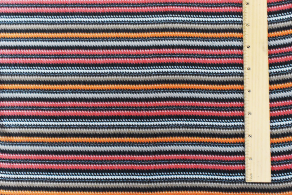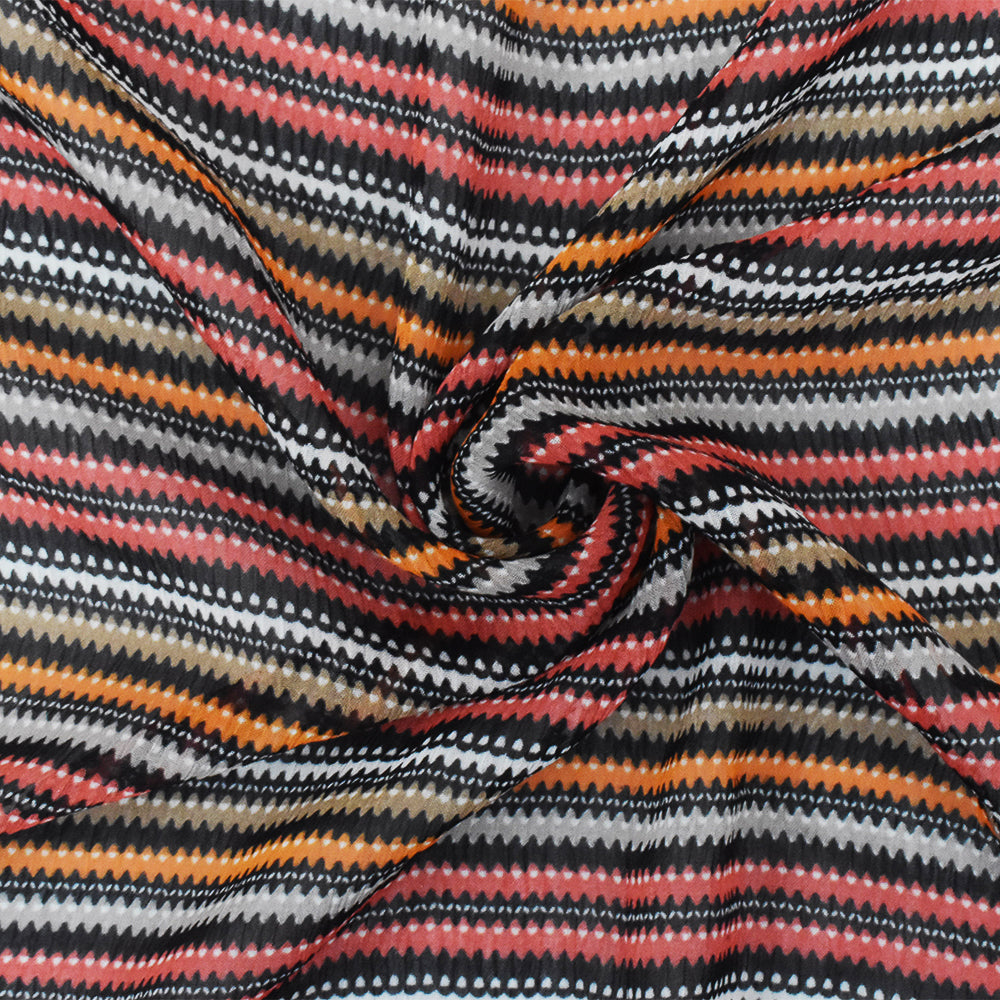Black-Multi Mini Wave Stripe Printed Poly Crinkle Yoryu Chiffon Fabric