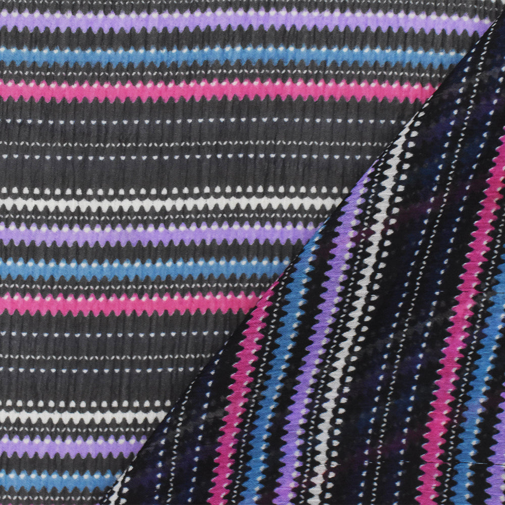 Black-Pink-Multi Mini Wave Stripe Printed Poly Crinkle Yoryu Chiffon Fabric